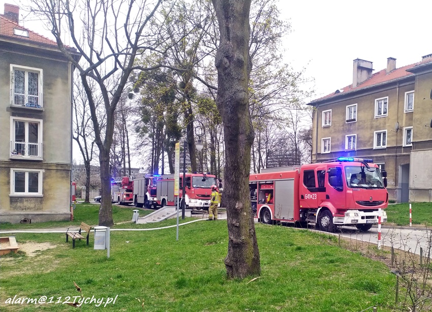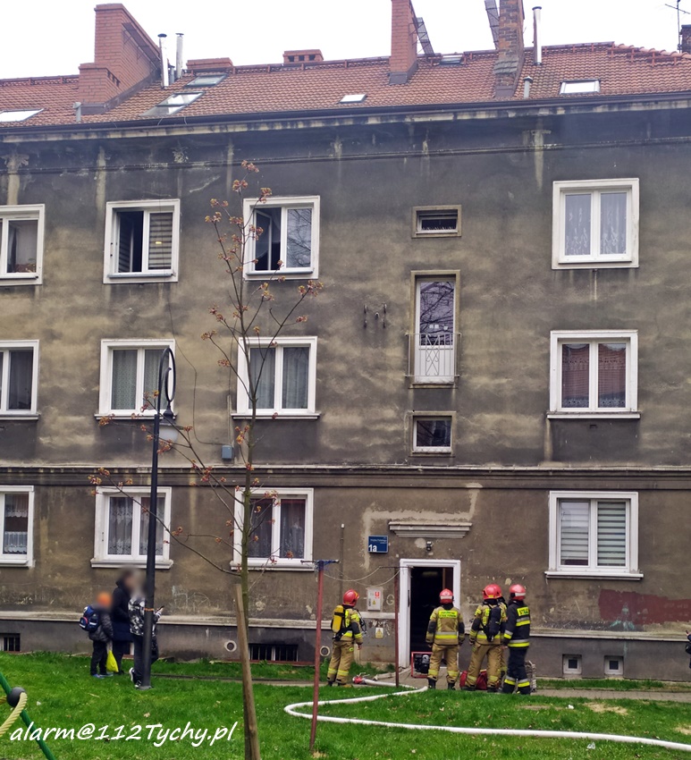 20 kwietnia około godziny 16:15 dyżurny SK KM PSP Tychy otrzymał zgłoszenie o pożarze kuchenki gazowej w jednym z mieszkań w budynku wielorodzinnym przy ul. Wojska Polskiego 1a. Na miejsce zgłoszenia natychmiast zadysponowane zostały zastępy KM PSP/JRG Tychy oraz patrol Policji. Po przybyciu na miejsce okazało się, że doszło do pożaru kuchenki gazowej oraz okapu. Pożar przed przybyciem został częściowo ugaszony. Strażacy ugasili pożar oraz udzielili kwalifikowanej pierwszej pomocy jednej z lokatorek, która podtruła się dymem. Dodatkowo na miejsce wezwany został ZRM, który przejął opiekę nad poszkodowaną. Po ugaszeniu pożaru strażacy przewietrzyli mieszkanie oraz klatkę schodową. Działania na miejscu pożaru trwały ponad godzinę. Trwa ustalanie przyczyn i okoliczności powstania pożaru.