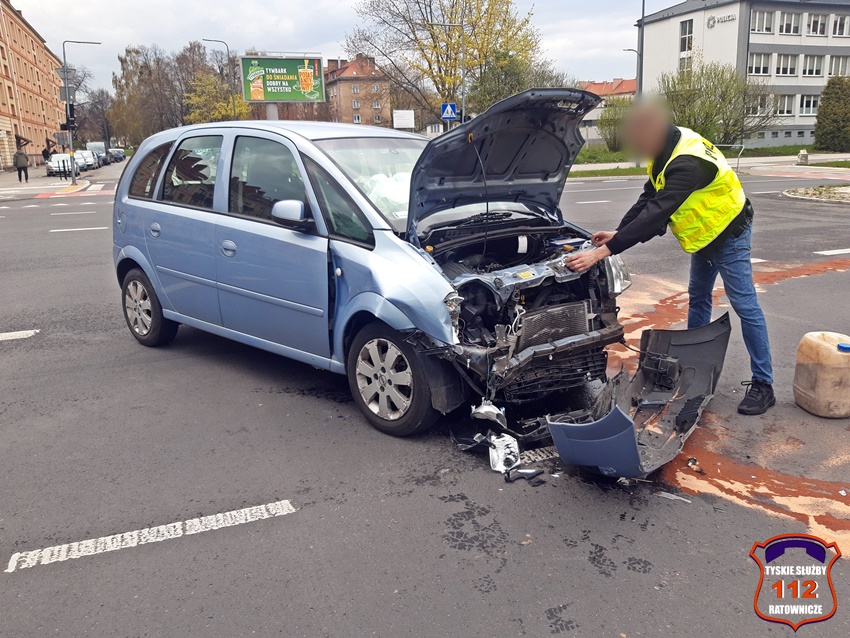 24 kwietnia około godziny 13:25 na skrzyżowaniu ul. Cienista – al. Bielska – al. Niepodległości doszło do zdarzenia drogowego z udziałem dwóch osobówek marki Opel. Do zdarzenia doszło przy wyłączonej sygnalizacji świetlnej na skrzyżowaniu. Na miejsce zdarzenia zadysponowane zostały: ZRM, zastępy KM PSP/JRG Tychy oraz patrole Policji. Jedna osoba podróżująca Oplem Meriva została przetransportowana do szpitala na dokładne badania. Ze wstępnych ustaleń pracujących na miejscu Policjantów wynika, że sprawcą zdarzenia jest kierowca Opla Corsa, który wykonując manewr skrętu w lewo z al. Bielskiej w al. Niepodległości wymusił pierwszeństwo na jadącym al. Bielską w kierunku browaru kierowcy Opla Meriva. Ze względu na zakwalifikowanie zdarzenia jako wypadek na miejsce wezwany został dodatkowo policyjny technik. Utrudnienia w ruchu w miejscu zdarzenia trwały ponad godzinę. Policjanci KMP Tychy prowadza dalsze postępowanie w tej sprawie.