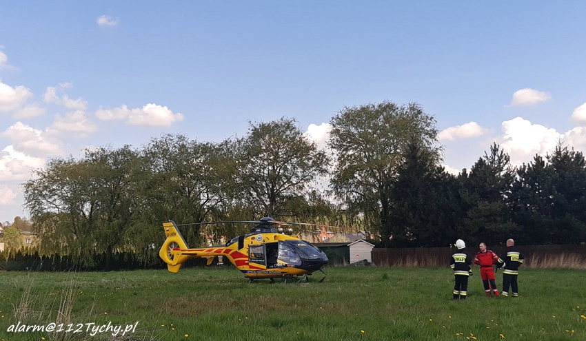 5 maja około godziny 13 dyżurny SK KM PSP Tychy otrzymał zgłoszenie z prośbą o zabezpieczenie lądowiska dla załogi śmigłowca Lotniczego Pogotowia Ratunkowego – Ratownik 4 w rejonie ul. Hallera w Imielinie. Załoga latającej karetki została wezwana do pomocy naziemnemu ZRM przy działaniach u poparzonego dziecka. Na miejsce zadysponowane zostały zastępy OSP Imielin oraz KM PSP/JRG Tychy. Po zaopatrzeniu dziecka została podjęta decyzja o transporcie naziemnym zespołem ratownictwa medycznego do szpitala. Działania służb na miejscu trwały około godziny.