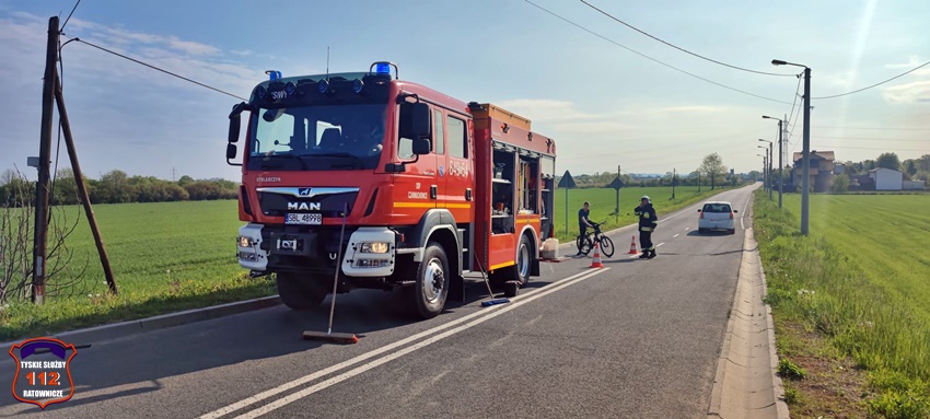 9 maja około godziny 7:50 dyżurny SK KM PSP Tychy otrzymał zgłoszenie o zdarzeniu drogowym na skrzyżowaniu ul. Mielęckiego – Dyrdy w Bieruniu – Czarnuchowicach. Ze zgłoszenia wynikało, że zderzyły się Opel i BMW. Na miejsce zdarzenia zadysponowano miejscową jednostkę OSP Czarnuchowice, zastęp KM PSP/JRG Tychy, ZRM oraz bieruńską Policję. Osoby uczestniczące w zdarzeniu trafiły pod opiekę ratowników medycznych. Ze wstępnych ustaleń pracujących na miejscu Policjantów wynika, że sprawczynią zdarzenie jest kierująca Oplem kobieta, która nie ustąpiła pierwszeństwa kierowcy BMW. Utrudnienia w ruchu w miejscu zdarzenia trwały około godziny.