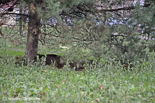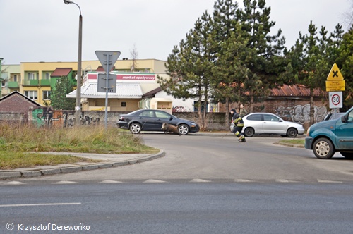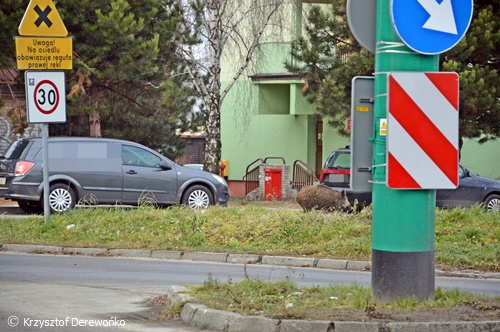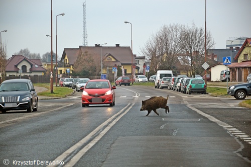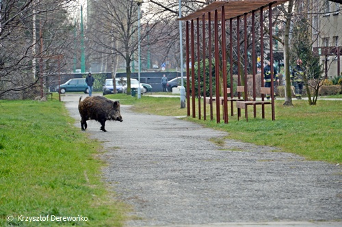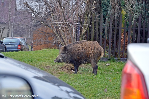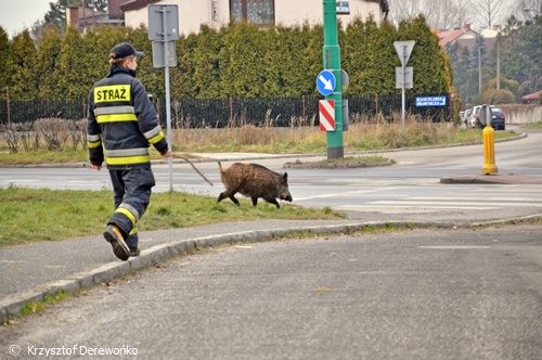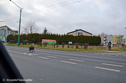 15 grudnia około godziny 13 do dyżurnego Tyskiej Straży Miejskiej wpłynęło zgłoszenie o dwóch dzikach przechadzających się po osiedlowym trawniku na os. H w okolicy ul. Żwakowskiej i Harcerskiej. Na miejsce wysłane zostały 2 patrole SM. Po dotarciu na miejsce strażnicy potwierdzili ten fakt. Podjęli próbę zagonienia dzików w kierunku pobliskiego lasu. Do pomocy zadysponowany został jeden zastęp strażaków z JRG Tychy. Na miejsce przyjechał również leśniczy. Wspólnymi siłami udało się jednego dzika przegonić z powrotem w kierunku lasu. Jednak z drugim już tak łatwo nie było. Dzik uciekał po całym osiedlu. Powodować zagrożenie w ruchu. Często pomimo wysiłków służb wybiegał na ul. Żwakowską, Harcerską. Udało się go w końcu zagonić w rejon torów kolejowych. Dzik został nakierowany w kierunku lasu. Jednak na wysokości os. Balbina mimo wysiłków dzik zawrócił po raz kolejny. Około godziny 16.15 udało się dzika zagonić do lasu i działania zostały zakończone. Wszystkie służby wróciły do swoich „normalnych” działań.