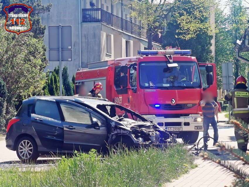10 maja około godziny 14:30 dyżurny SK KM PSP Tychy otrzymał zgłoszenie o pożarze samochodu osobowego na parkingu przy ul. Trzy Stawy. Na miejsce zgłoszenia zadysponowany został zastęp KM PSP/JRG Tychy oraz patrol Policji. Po dotarciu na miejsce strażacy zastali osobowego Peugeota, którego komora silnika w całości objęta była pożarem. Strażacy w kilka minut opanowali i ugasili pożar. Niestety samochód nie nadaje się do dalszego użytkowania. W wyniku pożaru uszkodzona została również pobliska altana śmietnikowa. Trwa ustalanie przyczyn i okoliczności powstania pożaru.
