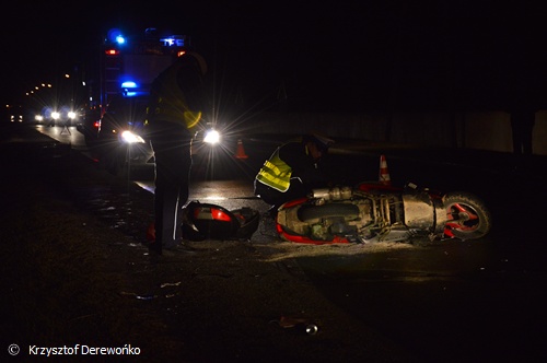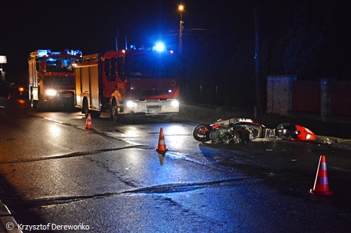 15 grudnia około godziny 20.45 w Chełmie Śląskim na ul. Chełmskiej doszło do kolizji jednośladu z samochodem osobowym. Na miejsce przyjechała załoga WRD KPP Bieruń. Po kilku minutach zaalarmowane zostały pozostałe służby. Na miejsce wysłana została karetka pogotowia oraz jeden zastęp z OSP Chełm Śląski i dwa zastępy z JRG Tychy. Po dotarciu na miejsce służb okazało się, że kierowca jednośladu jak i jego pasażer zniknęli z miejsca zdarzenia. Kierującemu pojazdem osobowym nic się nie stało. Po krótkich poszukiwaniach kierujący został odnaleziony niedaleko od miejsca zdarzenia w okolicy swojego domu, a pasażer nadal był poszukiwany przez strażaków i inne załogi z KPP Bieruń. Kierujący jednośladem został zabrany do szpitala. Działania strażaków polegały głównie na zabezpieczeniu miejsca zdarzenia oraz kierowaniu ruchem. Odłączyli oni również akumulator w rozbitym skuterze. Po kilkunastu minutach poszukiwań odnaleziony został również pasażer feralnego skutera. Został on przywieziony na miejsce zdarzenia. Będąc już na miejscu zgłosił, że się źle czuje i będzie potrzebował pomocy lekarskiej. Policjanci na miejsce zadysponowali dodatkową karetkę. Pasażer po przebadaniu pozostał na miejscu. Dodatkowo strażacy uprzątnęli miejsce zdarzenia. Dokładne okoliczności i przyczyny tego zdarzenia wyjaśniają funkcjonariusze z WRD KPP w Bieruniu.