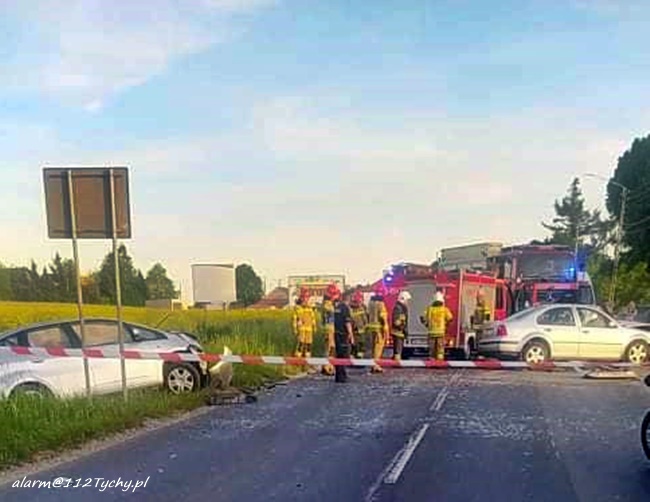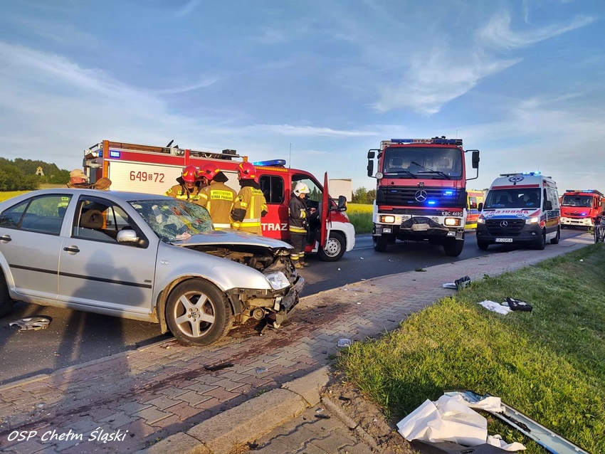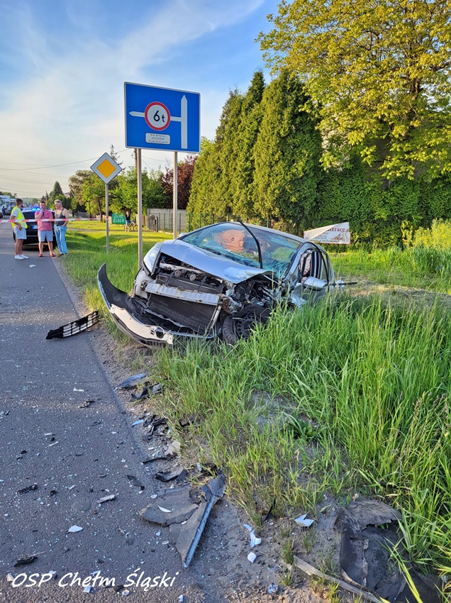 19 maja około godziny 18:35 w Chełmie Śląskim doszło do dwóch zdarzeń drogowych spowodowanych przez jednego pijanego kierowcę VW. Pierwsze zdarzenie miało miejsce w rejonie skrzyżowania ul. Gamrot – Chełmska, gdzie kierowca osobowego VW nie ustąpił pierwszeństwa kierującej Nissanem i uciekł z miejsca, uderzył również w ogrodzenie i bramę wjazdową do jednej z posesji. Po kilkuset metrach na ul. Chełmskiej kierowca VW wyprzedzał Skodę. Podczas tego manewru uderzył w jej bok, a następnie doprowadził do czołowego zderzenia z jadącą z naprzeciwka Hondą. Po zderzeniu Honda wypadł z drogi do przydrożnego rowu, a kierowca VW został zakleszczony we wraku swojego pojazdu. Na miejsce zdarzenia wezwane zostały liczne patrole KPP Bieruń, zastępy OSP Chełm Śląski, KM PSP/JRG Tychy, ZRM oraz śmigłowiec LPR. Droga została całkowicie zablokowana. Kierująca Hondą kobieta (29 lat) została przetransportowana do szpitala naziemnym ZRM, a sprawca zdarzenia (42 lata) trafił drogą lotniczą do szpitala w Katowicach Ochojcu. Jak się okazało podczas badań w chwili wypadku był kompletnie pijany. Badanie na zawartość alkoholu wykazało ponad 3 promile. Działania służb na miejscu zdarzenia trwały około pięć godzin. Dopiero przed północą pojazdy zostały odholowane, a ruch przywrócono. Bieruńscy Policjanci prowadzą dalsze postępowanie w sprawie tego zdarzenia. Za te zdarzenia 42-latek odpowie przed sądem.