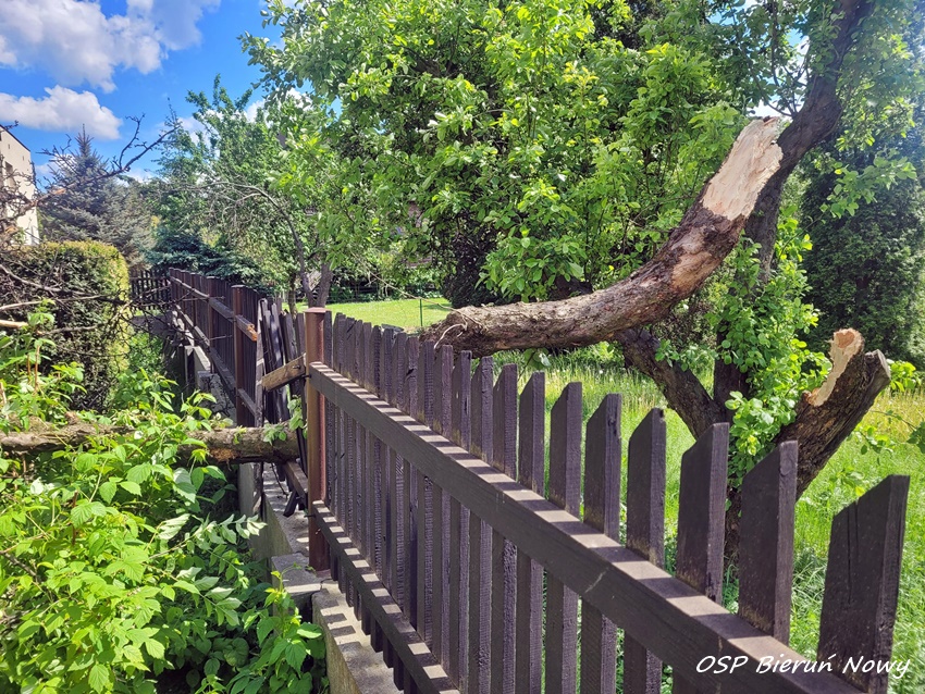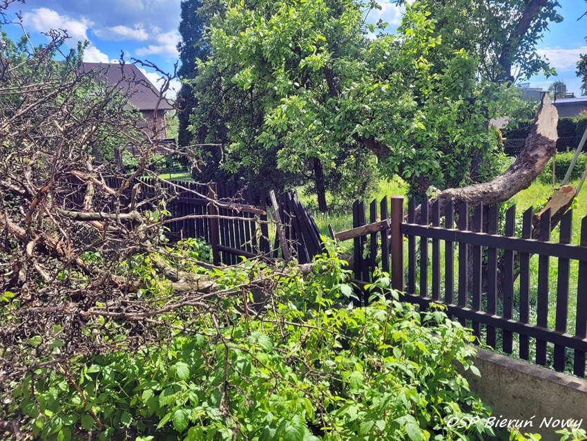 21 maja około godziny 14:40 dyżurny SK KM PSP Tychy otrzymał zgłoszenie o powalonym drzewie na ul. Zuchowej w Bieruniu. Na miejsce zgłoszenia został zadysponowany zastęp OSP Bieruń Nowy. Po dotarciu na miejsce okazało się, że w wyniku silnego wiatru doszło do złamania drzewa. Urwany konar spadł na ogrodzenie posesji. Strażacy przy użyciu pilarek łańcuchowych usunęli zagrożenie. Po około godzinie działania zostały zakończone.