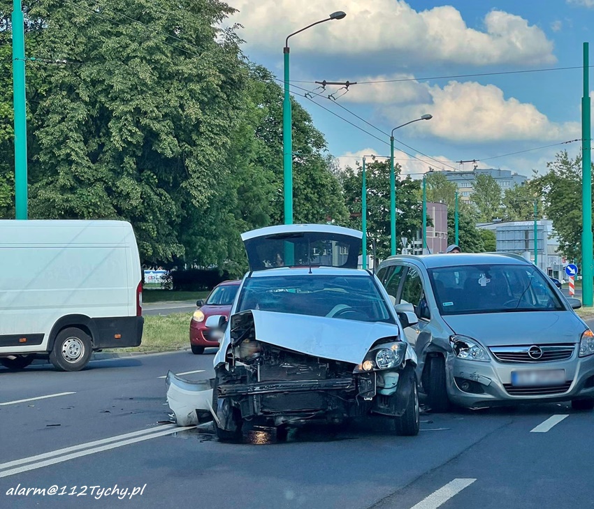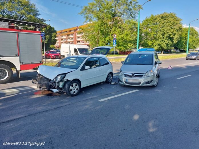 30 maja około godziny 17:13 dyżurny SK KM PSP Tychy otrzymał zgłoszenie o zdarzeniu drogowym na ul. Żwakowskiej. Ze zgłoszenia wynikało, że nikt nie odniósł z obrażeń, a z pojazdów wyciekły płyny eksploatacyjne. Na miejsce zadysponowany został zastęp OSP Lędziny oraz patrol Policji. Po przybyciu na miejsce zgłoszenie zostało potwierdzone. Ze wstępnych ustaleń pracujących na miejscu Policjantów wynika, ze sprawcą zdarzenia jest kierowca osobowego Forda, który włączając się do ruchu z pobliskiego parkingu nie ustąpił pierwszeństwa poruszającego się ul. Żwakowską kierowcy Opla. Po wykonaniu dokumentacji przez funkcjonariuszy Policji uszkodzone pojazdy zostały usunięte z drogi. Utrudnienia w ruchu trwały około godziny. POlicjanci KMP Tychy prowadzą dalsze postępowanie w sprawie tego zdarzenia.
