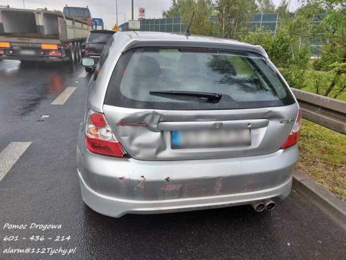 1 czerwca około godziny 7:30 na ul. Beskidzkiej (DK 1) w rejonie węzła z DK 44 doszło do zdarzenia drogowego z udziałem osobowej Hondy oraz ciągnika siodłowego Mercedes z naczepą. Na miejsce zdarzenia wezwane zostały zastępy KM PSP/JRG Tychy oraz patrol Policji. Do zdarzenia doszło na pasie w kierunku Katowic. Jak się okazało po przybyciu służb ratunkowych na miejsce nikt nie ucierpiał, a doszło do klasycznego najechania na tył poprzedzającego pojazdu. Działania na miejscu trwały około godziny.