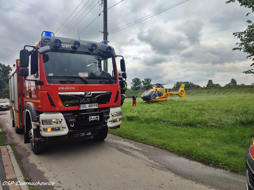 8 czerwca około godziny 14:20 dyżurny SK KM PSP Tychy otrzymał zgłoszenie z prośbą o zabezpieczenie lądowiska dla śmigłowca LPR Ratownik 4 przy ul. Dyrdy w Bieruniu Czarnuchowicach. Na miejsce zadysponowane zostały zastępy OSP Czarnuchowice oraz KM PSP/JRG Tychy. Latająca karetka została zadysponowana wraz z naziemnym ZRM do pomocy 82 – letniemu mężczyźnie, który został potrącony przez samochód na terenie jednej z posesji. Poszkodowany mężczyzna trafił pod opiekę ratowników medycznych. Policjanci KPP Bieruń prowadzą dalsze postępowanie w tej sprawie.