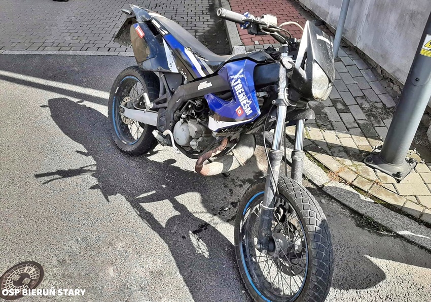 14 czerwca około godziny 8:55 dyżurny SK KM PSP Tychy otrzymał zgłoszenie, o zderzeniu motocyklisty z samochodem osobowym na skrzyżowaniu ul. Wylotowa – Trochy w Bieruniu. Na miejsce zdarzeni natychmiast zadysponowane zostały zastępy OSP Bieruń Stary, KM PSP/JRG Tychy, ZRM oraz patrol Policji. Po dotarciu na miejsce zgłoszenie zostało potwierdzone. W wyniku zdarzenia poszkodowany został 14 latek poruszający się jednośladem. Z urazem obojczyka został on przetransportowany do szpitala. Ze wstępnych ustaleń pracujących na miejscu Policjantów wynika, że sprawczynią zdarzenia jest 31 – letnia kobieta kierująca osobowym BMW, która nie ustąpiła pierwszeństwa przejazdu młodemu motocykliście. Działania służb ratunkowych na miejscu trwały ponad godzinę.