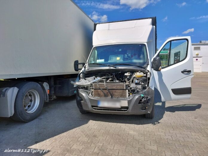 15 czerwca około godziny 14:20 dyżurny SK KM PSP Tychy otrzymał zgłoszenie o plamie płynów eksploatacyjnych na ul. Beskidzkiej w rejonie skrzyżowania z ul. Fabryczną. Na miejsce zgłoszenia zadysponowany został zastęp KM PSP/JRG Tychy. Jak się okazało plama powstałą w wyniku zderzenia busa z naczepa ciężarówki. Dodatkowo na miejsce wezwany został patrol Policji. Ze wstępnych ustaleń pracujących na miejscu Policjantów wynika, że do zdarzenia doszło w momencie gdy kierowca busa włączając się do ruchu z ul. Fabrycznej na ul. Beskidzką zahaczył o naczepę ciężarówki. Obydwa pojazdy uczestniczące w zdarzeniu zjechał na pobliską stację benzynową. Policjanci KMP Tychy prowadzą dalsze postępowanie w tej sprawie.