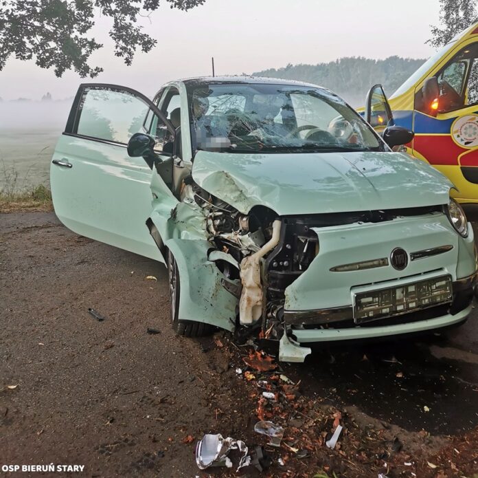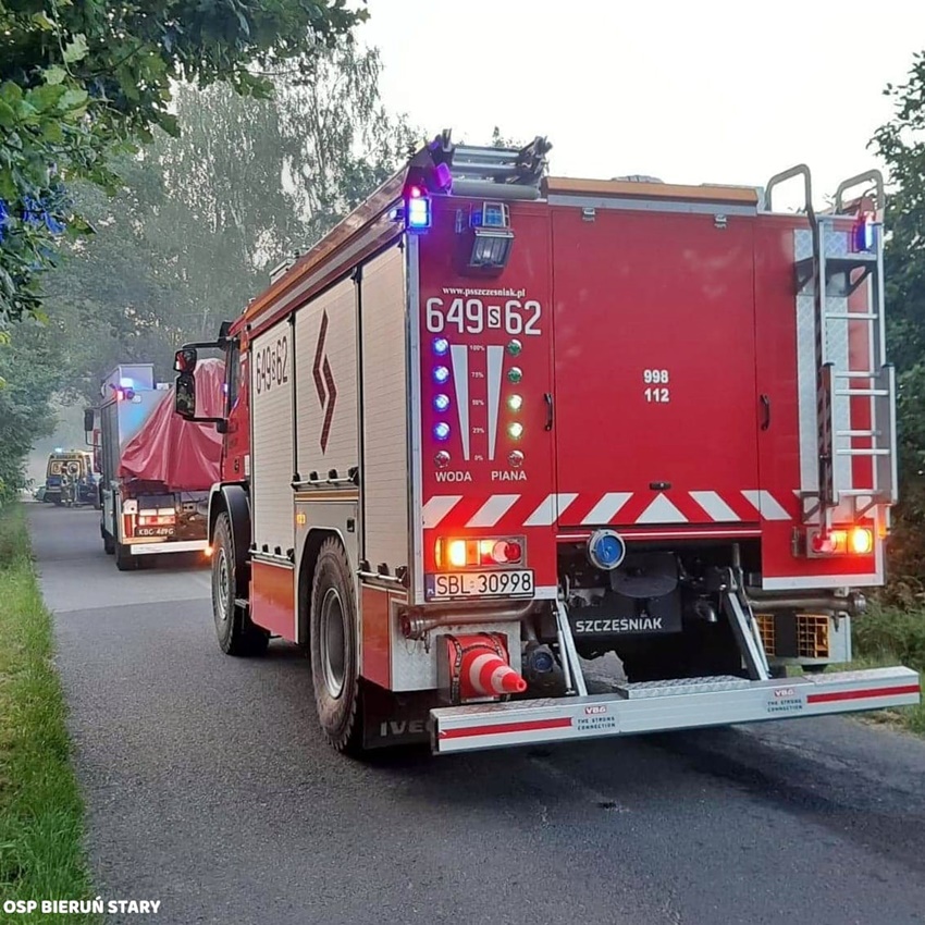 19 czerwca około godziny 4:25 dyżurny SK KM PSP Tychy otrzymał zgłoszenie, że na ul. Świerczynieckiej w Bieruniu samochód osobowy uderzył w drzewo. Na miejsce zgłoszenia zadysponowane zostały zastępy OSP Bieruń Stary, KM PSP/JRG Tychy oraz ZRM i Policja. Po dotarciu na miejsce ratownicy nic nie znaleźli. Po konsultacji z dyżurnymi SK KM PSP Tychy oraz KPP Bieruń okazało się, że do zdarzenia doszło na ul. Złoty Łan w Świerczyńcu. Po kilu minutach ratownicy byli na miejscu. Ratownicy zastali osobowego Fiata, którym podróżowały trzy osoby rozbitego na przydrożnym drzewie. Na czas działań ratunkowych droga była zablokowana. Osoby podróżujące pojazdem trafiły pod opiekę ratowników medycznych. Działania służb ratunkowych na miejscu trwały ponad godzinę. Policjanci KPP Bieruń prowadza dalsze postępowanie w tej sprawie.