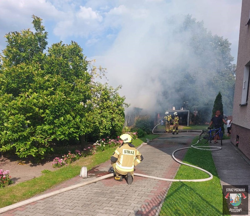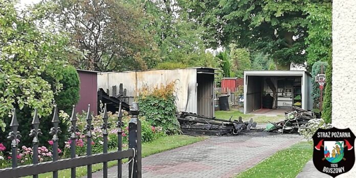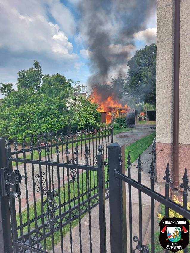 25 czerwca około godziny 17:44 dyżurny SK KM PSP Tychy otrzymał zgłoszenie o pożarze garażu na terenie jednej z posesji przy ul. Chmielnej w Bojszowach. Na miejsce zgłoszenia natychmiast zadysponowane zostały zastępy OSP Bojszowy i KM PSP/JRG Tychy oraz patrol Policji. Po dotarciu na miejsce zgłoszenie zostało potwierdzone. Pożarem objęte były dwa garaże: drewniany i blaszany. W trakcie działań podane zostały dwa prądy gaśnicze, jeden na palące się obiekty, a drugi celem obrony sąsiedniego budynku. Po ugaszeniu pożaru strażacy wynieśli ze spalonych garaży ich zawartość i dodatkowo je przelali. Trwa ustalanie przyczyn i okoliczności powstania pożaru.