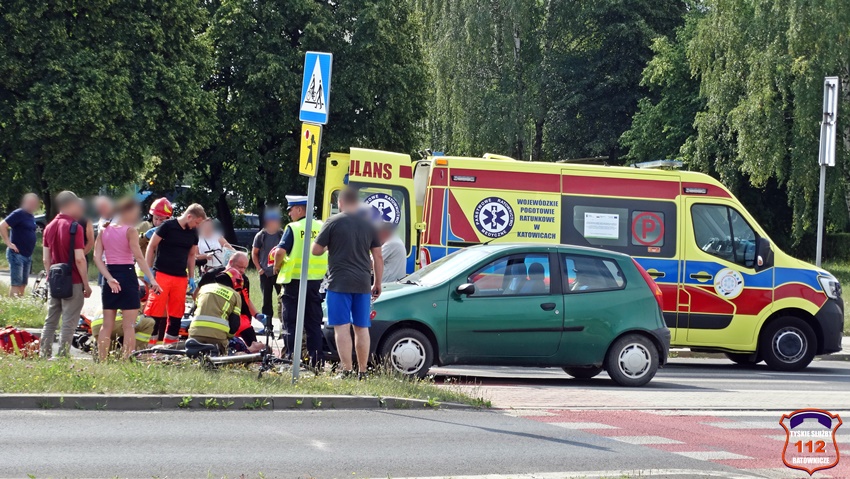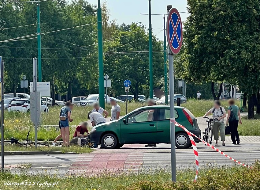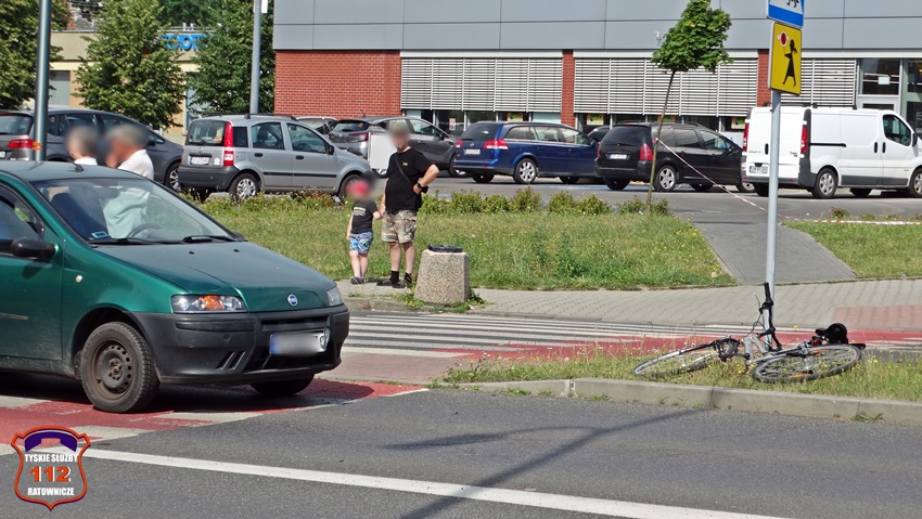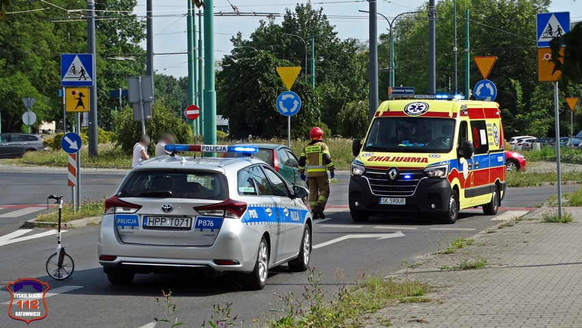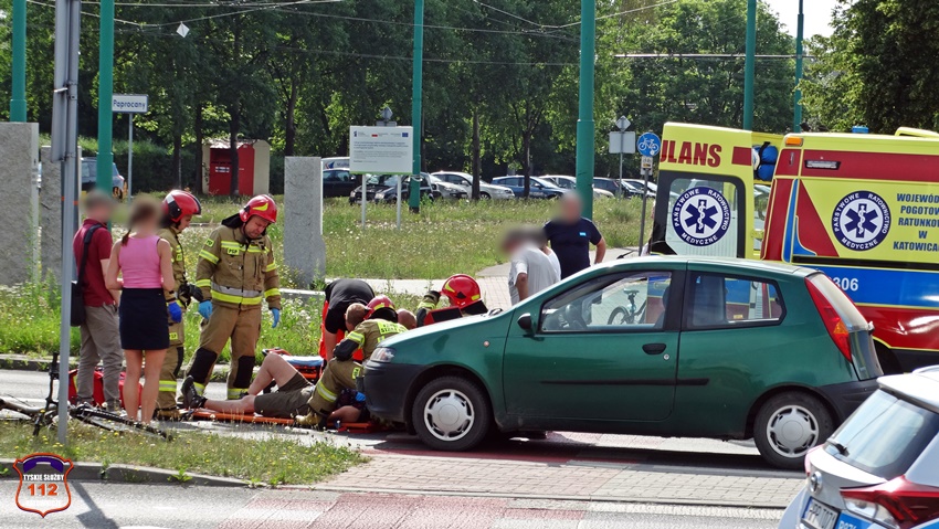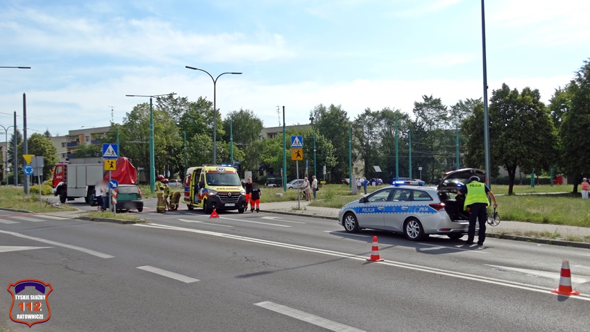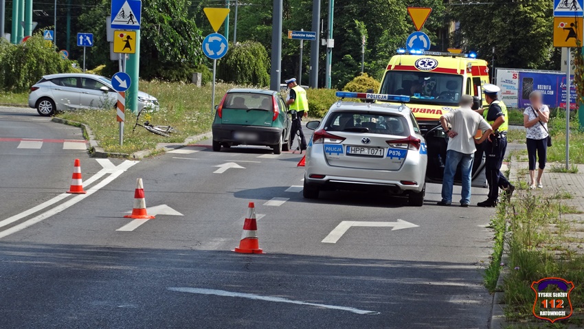 28 czerwca około godziny 9 na oznakowanym przejściu dla pieszych z wyznaczoną śluzą rowerową (D – 6b) na ul. Armii Krajowej w rejonie Ronda Zesłańców Sybiru (Sikorskiego – Armii Krajowej) doszło do potrącenia rowerzystki przez samochód osobowy marki Fiat. Na miejsce zdarzenia zadysponowane zostały: ZRM, zastępy KM PSP/JRG Tychy oraz Policja. Przed przyjazdem służb ratunkowych z pomocą poszkodowanej pospieszyli świadkowie zdarzenia. Na czas działań ratunkowych został wyznaczony objazd ul. Hutniczą. Ze wstępnych ustaleń pracujących na miejscu Policjantów wynika, że 66 – letni kierowca osobówki nie zauważył znajdującej się na oznakowanym przejściu dla pieszych z wyznaczoną śluzą rowerową 61 – letniej rowerzystki. W wyniku zdarzenia kobieta z obrażeniami ciała została przetransportowana do szpitala. Działania służb ratunkowych na miejscu trwały ponad godzinę. Policjanci KMP Tychy prowadzą dalsze postępowanie w tej sprawie.