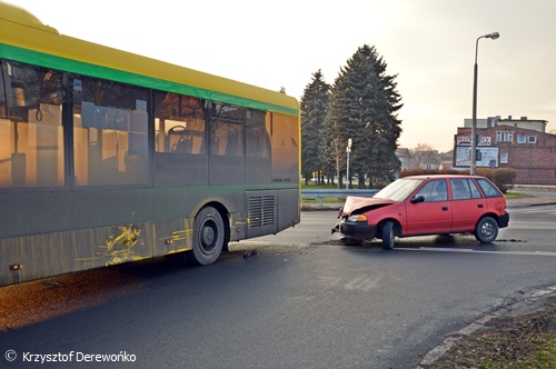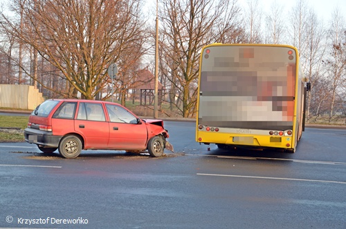 Kolizja autobusu z samochodem osobowym na ul. Katowickiej