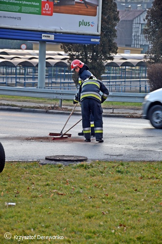 Dzisiaj 22 grudnia około godziny 14.40 na ul. Katowickiej doszło do kolizji autobusu Tyskiego PKM z samochodem osobowym. Na miejsce skierowany został patrol Policji. Policjanci zabezpieczyli miejsce zdarzenia. Nikomu z pasażerów autobusu ani osobom podróżującym samochodem osobowym nic sie nie stało. Na miejsce zadysponowany został jeden zastep z JRG Tychy celem dodatkowego zabezpieczenia miejsca oraz pomocy w usunięciu uszkodzonego pojazdu z drogi. Dodatkowo strażacy przy użyciu sorbentu zneutralizowali rozlane płyny eksploatacyjne. Na miejsce dojechał również patrol WRD. Jeden pas ruchu w kierunku centrum był wyłączony z ruchu przez około godzinę. Dokładne okoliczności zaistnienia tego zdarzenia wyjaśniają już Policjanci z WRD KMP Tychy.