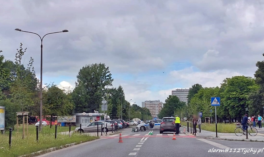 8 lipca około godziny 9:30 dyżurny KMP Tychy otrzymał zgłoszenie potrąceniu rowerzysty na ul. Dąbrowskiego. Na miejsce zdarzenia zadysponowany został ZRM i patrol Policji. Na czas działań ul. Dąbrowskiego w miejscu zdarzenia została zamknięta dla ruchu. Objazdy zostały wyznaczone ul. Darwina i ul. Dębową. Rowerzysta z urazem ręki trafił pod opiekę ratowników medycznych, a następnie został przewieziony do szpitala na dalsza diagnostykę. Ze wstępnych ustaleń pracujących na miejscu Policjantów wynika, że kierująca samochodem osobowym w rejonie oznakowanego przejścia dla pieszych z wyznaczoną śluzą rowerową (D – 6b) potrąciła rowerzystę. Działania na miejscu trwały blisko dwie godziny. Policjanci KMP Tychy prowadzą dalsze postępowanie w tej sprawie.