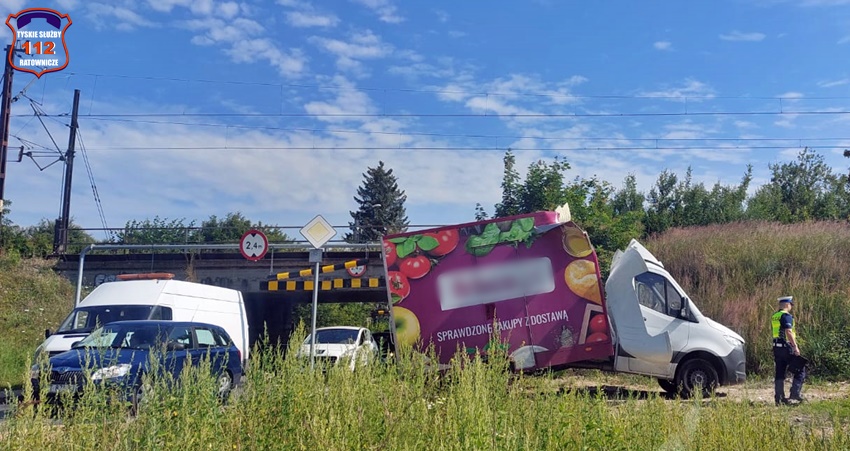 14 lipca po godzinie 9 na ul. Glinczańskiej doszło do zdarzenia drogowego. Kierujący samochodem dostawczym marki Mercedes nie zastosował się do znaku ograniczającego wysokość pojazdu do 2,4m (B-16) i uderzył w bramownicę oraz wiadukt. W wyniku uderzenia pojazd został doszczętnie zniszczony. Na miejsce zdarzenia wezwany został patrol Policji oraz służba drogowa. Niestety po zdarzeniu pojazd nadaje się tylko na złom. Kierowca dostawczaka został ukarany mandatem karnym.
