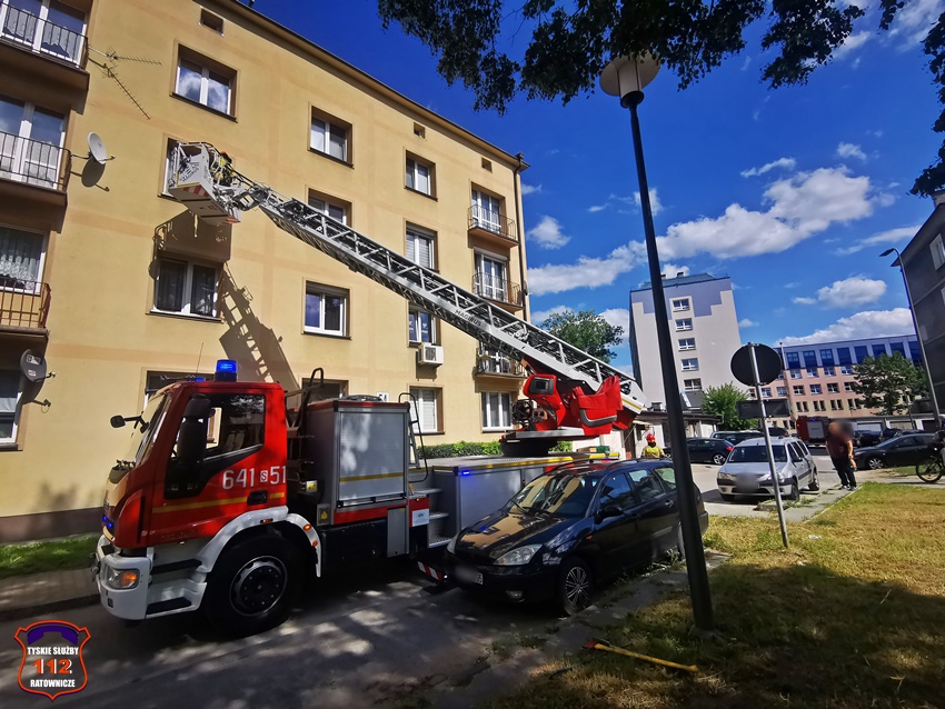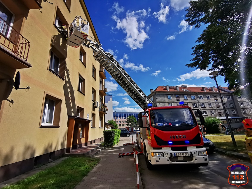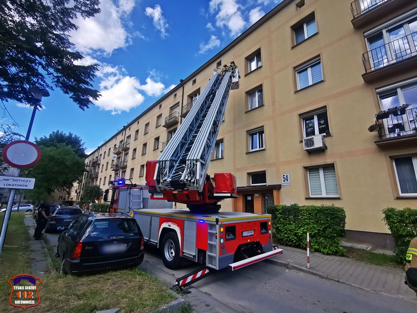 15 lipca około godziny 15:20 dyżurni SK KM PSP Tychy oraz KMP Tychy otrzymali zgłoszenie, że w jednym z mieszkań w budynku wielorodzinnym przy al. Niepodległości 54 może znajdować się osoba potrzebująca pilnej pomocy. Na miejsce zadysponowane zostały zastępy KM PSP/JRG Tychy oraz patrol Policji. Policjanci wraz ze strażakami podjęli decyzję o wejściu do mieszkania przez okno. W tym celu sprawiona została drabina mechaniczne. Po wejściu do mieszkania i jego dokładnym sprawdzeniu okazało się, że lokatora nie ma. W trakcie wykonywania dokumentacji funkcjonariusze otrzymali informację od jednego z sąsiadów, że lokator przebywa na leczeniu w jednym ze śląskich szpitali. Po około trzydziestu minutach działania zostały zakończone.
