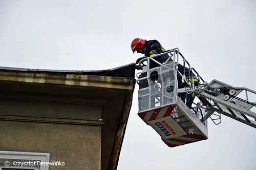 25 grudnia około godziny 10.15 do MSK wpłynęło zgłoszenie od mieszkańca jednego z budynków na ul. Arkadowej, że na dachu budynku jest naderwana blacha. Na miejsce wysłane zostały 2 zastępy z JRG Tychy. Strażacy po dotarciu na miejsce i rozpoznaniu sytuacji przy użyciu drabiny mechanicznej dostali się na dach. Używając podręcznych narzędzi przymocowali blachę na swoje miejsce. Po około 30 minutach zastępy powróciły do koszar.