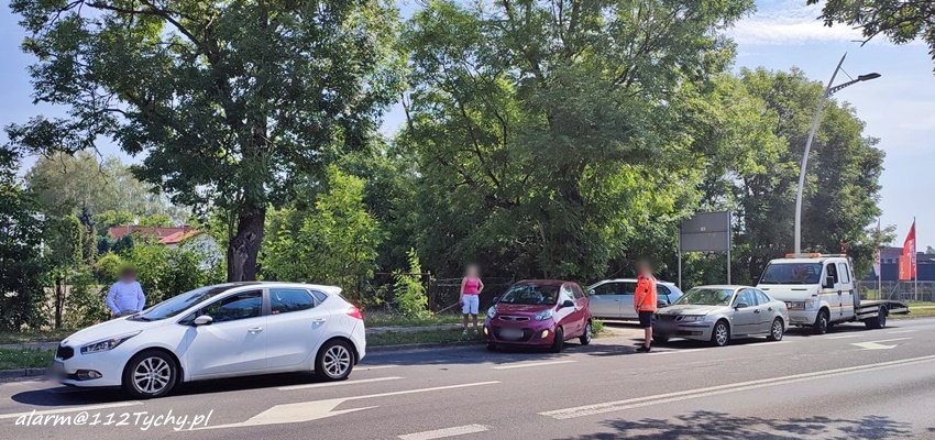 23 lipca około godziny 10:30 na ul. Mikołowskiej w rejonie skrzyżowania z ul. Podleską doszło do kolizji drogowej, w której udział brały trzy samochody osobowe. Na miejsce zdarzenia wezwany został ZRM i patrol Policji. Na czas działań ruch w kierunku Mikołowa odbywał się z utrudnieniami. Ze wstępnych ustaleń pracujących na miejscu Policjantów wynika, że kierująca Saab-em nie zachowała należytej ostrożności i uderzyła w znajdującą się przed nią osobową Kia, a ta uderzyła w kolejny samochód, również Kia. Na szczęście nikt nie odniósł poważniejszych obrażeń. Utrudnienia w ruchu w miejscu zdarzenia trwały około godziny. Policjanci KMP Tychy prowadza dalsze postępowanie w tej sprawie.