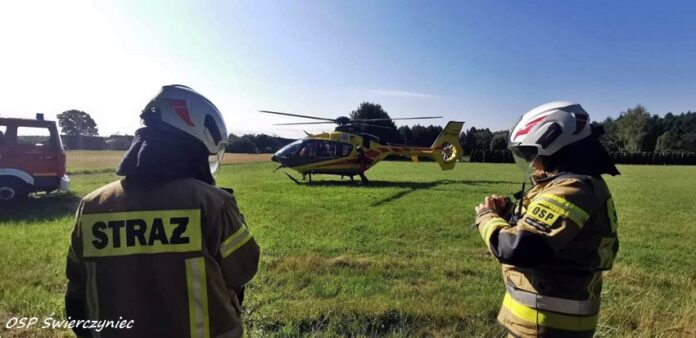 28 lipca około godziny 8:30 dyżurny SK KM PSP Tychy otrzymał zgłoszenie, że w jednym z domów na ul. Leśnej w Świerczyńcu małe dziecko potrzebuje pilnej pomocy. Na miejsce zadysponowane zostały: ZRM, załoga śmigłowca LPR – Ratownik 4 oraz zastępy OSP Świerczyniec i KM PSP/JRG Tychy. Po przybyciu na miejsce okazało się, że poszkodowane jest 2 – letnie dziecko. Ratownicy medyczni oraz lekarz podjęli decyzję o transporcie malucha do szpitala w Katowicach Ligocie na dokładne badania. Po około czterdziestu minutach działania na miejscu zostały zakończone.