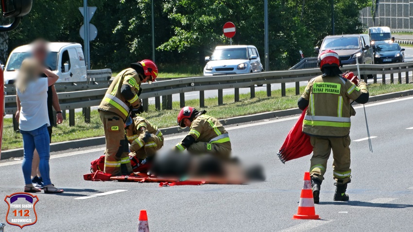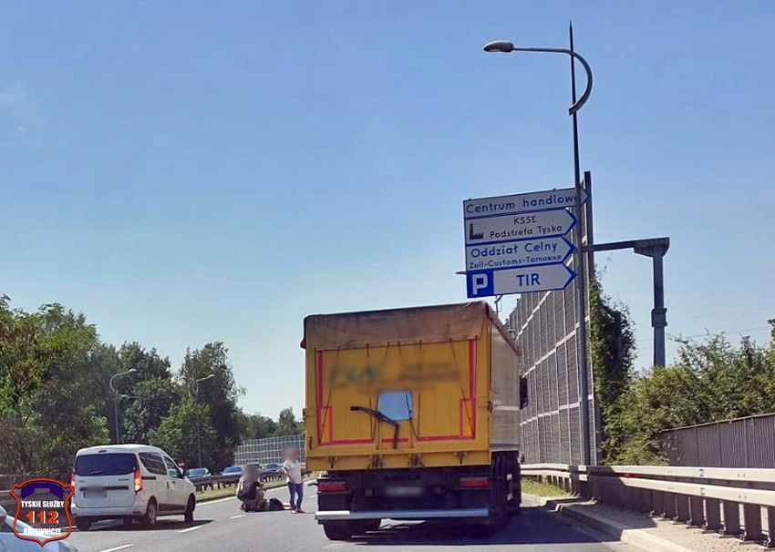 28 lipca około godziny 11:20 na ul. Beskidzkiej (DK 1) doszło do potrącenia pieszego przez samochód dostawczy. Z pomocą pieszemu pospieszyli świadkowie zdarzenia. Ruch w kierunku Pszczyny został całkowicie zablokowany. Na miejsce zdarzenia wezwane zostały: ZRM, patrole Policji oraz zastępy KM PSP/JRG Tychy. Poszkodowany mężczyzna z obrażeniami głowy trafił pod opiekę ratowników medycznych, a następnie został przetransportowany do szpitala. Ze wstępnych ustaleń pracujących na miejscu Policjantów wynika, że pieszy wszedł wprost pod nadjeżdżający samochód dostawczy marki Renault. Przez 25 minut trasa była zablokowana całkowicie, a następnie ruch puszczany był stopniowo. Policjanci KMP Tychy prowadza dalsze postępowanie w tej sprawie.