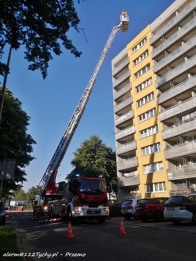 5 sierpnia około godziny 17:30 dyżurny SK KM PSP Tychy otrzymał zgłoszenie o pożarze dachu budynku wielorodzinnego przy ul. Wejchertów. Na miejsce natychmiast zadysponowane zostały zastępy KM PSP/JRG Tychy oraz Policja. Na czas działań ruch na ul. Wejchertów został zablokowany. Po przybyciu na miejsce i rozpoznaniu sytuacji okazało się, że nie ma żadnego pożaru. Zgłoszenie zostało uznane za alarm fałszywy. Po około trzydziestu minutach działania zostały zakończone.