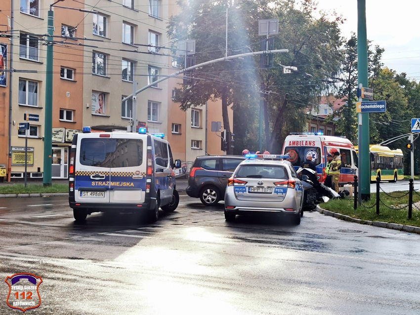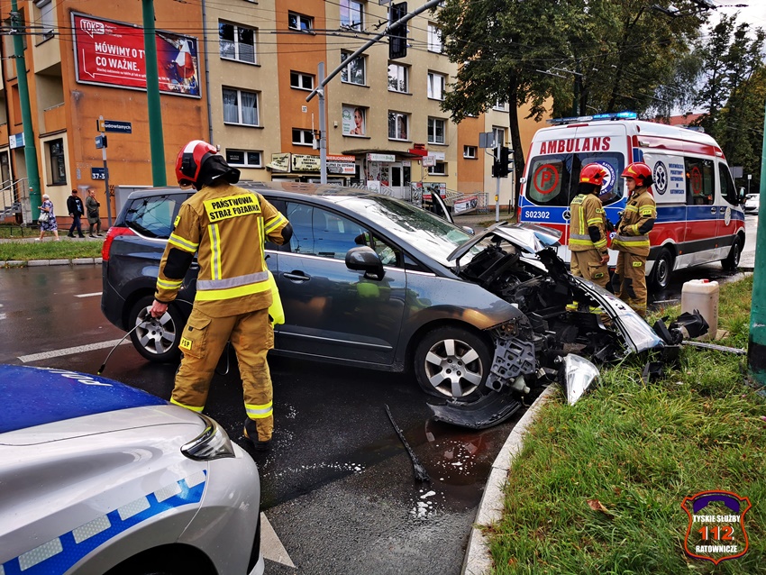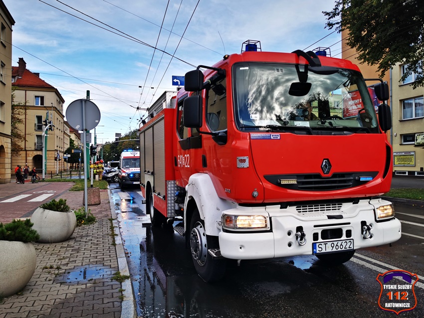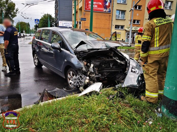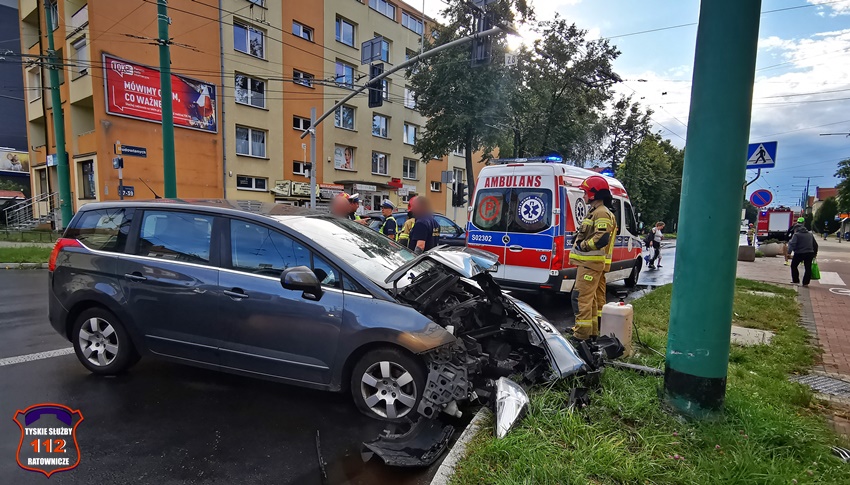 11 sierpnia około godziny 17:35 dyżurny SK KM PSP Tychy otrzymał zgłoszenie o zdarzeniu drogowym na skrzyżowaniu ul. Begonii – Budowlanych – Bocheńskiego. Ze zgłoszenia wynikało, że samochód osobowy marki Peugeot uderzył w betonowy słup trakcji trolejbusowej. Na czas działań ruch w kierunku dworca PKP został zablokowany. Na miejsce zdarzenia zadysponowane zostały; ZRM, zastępy KM PSP/ JRG Tychy oraz patrol Policji. Miejsce zdarzenia zabezpieczał patrol Straży Miejskiej, który najechał na zdarzenie podczas patrolowania miasta. Z pomocą mężczyźnie pospieszyli świadkowie zdarzenia. Badanie alkomatem wykazało, że mężczyzna nie spożywał alkoholu, a wynik to 0,00 mg/l. Ostatecznie mężczyzna trafił pod opiekę ratowników medycznych i został przewieziony do szpitala na dokładne badania. Uszkodzony pojazd został zepchnięty ze skrzyżowania, a następnie odholowany przez wezwaną na miejsce pomoc drogową. Na chwilę obecną nie są znane przyczyny tego zdarzenia. Policjanci KMP Tychy prowadzą dalsze postępowanie w tej sprawie.
