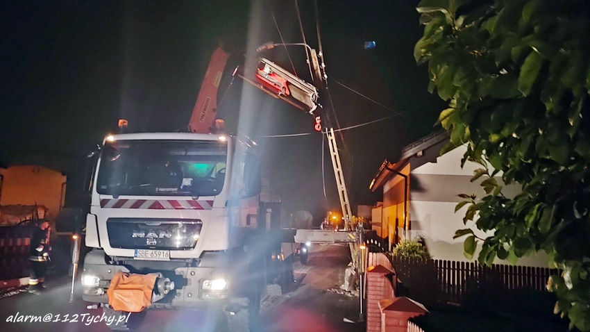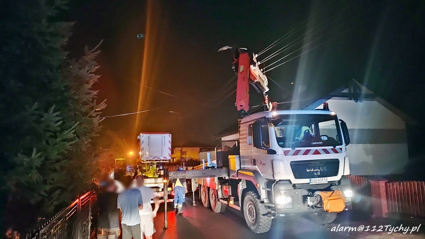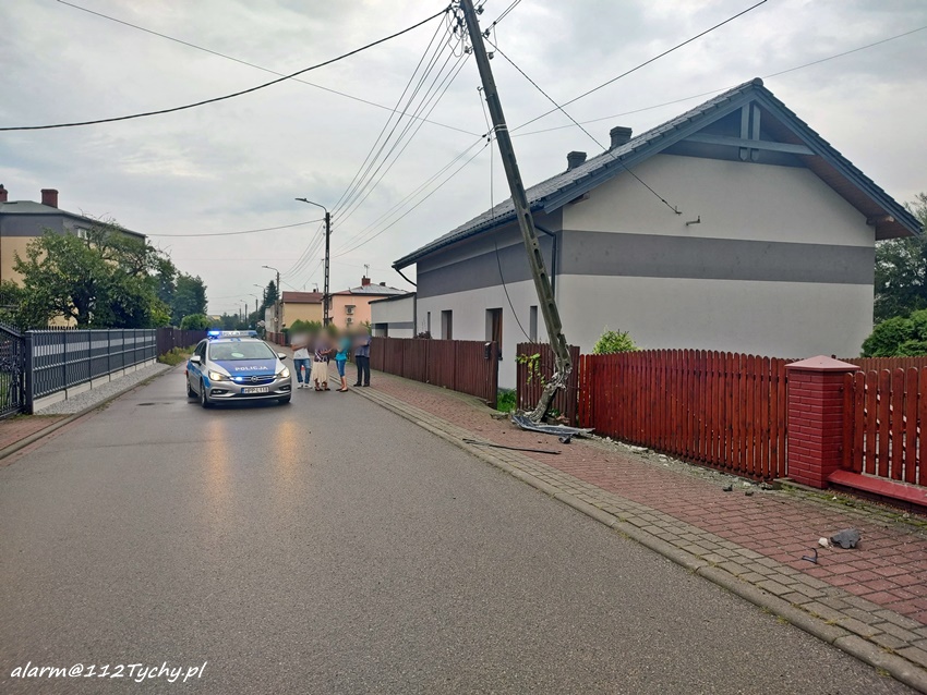 20 sierpnia po godzinie 18:30 dyżurny SK KM PSP Tychy otrzymał zgłoszenie o złamanym słupie energetycznym na ul. Poniatowskiego w Imielinie. Na miejsce zdarzenia zadysponowany został zastęp OSP Imielin oraz patrol Policji. Po dotarciu na miejsce okazało się, że słup został uszkodzony w wyniku uderzenia w niego samochodu osobowego. Jak się okazało w słup uderzył bokiem osobowy Mercedes kierowany przez 19 latka, a z którym podróżowała nieletnia pasażerka. Na szczęście w wyniku tego zdarzenia nie doznali oni obrażeń. Na miejsce zdarzenia wezwane zostało pogotowie energetyczne, którego pracownicy do późnych godzin nocnych dokonywali wymiany uszkodzonego słupa. Przez cały czas działań ul. Poniatowskiego była zablokowana. Za to zdarzenie kierowca osobówki został sowicie nagrodzony mandatem karnym przez pracujących na miejscu Policjantów, a dodatkowo z jego polisy OC zostanie wypłacone odszkodowanie za zniszczony słup energetyczny.