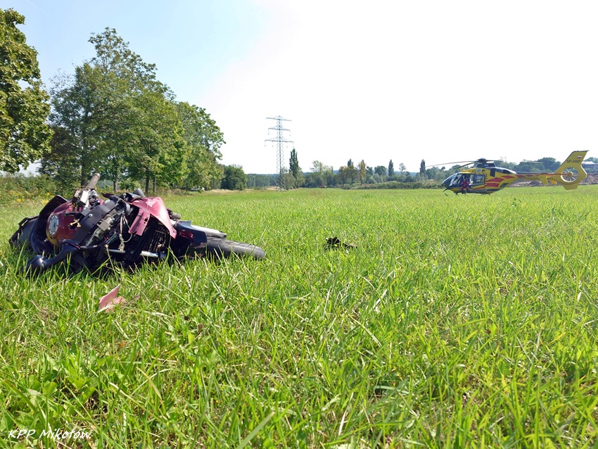 uratować życia 43 – letniego motocyklisty. Ze wstępnych ustaleń pracujących pod nadzorem prokuratury Policjantów wynika, że do zdarzenia doszło w momencie gdy motocyklista wykonywał manewr wyprzedzania kolumny pojazdów, a kierowca jednego z nich (Renault) rozpoczął manewr skrętu w lewo na skrzyżowaniu ul. Pszczyńska – Główna. Po zderzeniu z osobówką motocyklista wypadł z drogi na pobliską łąkę. Działania służb na miejscu trwało kilka godzin. Oba pojazdy biorące udział w zdarzeniu decyzją prokuratury zostały zabezpieczone na policyjnym parkingu. Dodatkowo w trakcie czynności okazało się, że motocyklista nie posiadał prawa jazdy kat. „A”, która uprawniałaby go do poruszania się motocyklem. Mikołowscy Policjanci pod nadzorem prokuratury prowadzą dalsze czynności w sprawie tego tragicznego w skutkach wypadku.