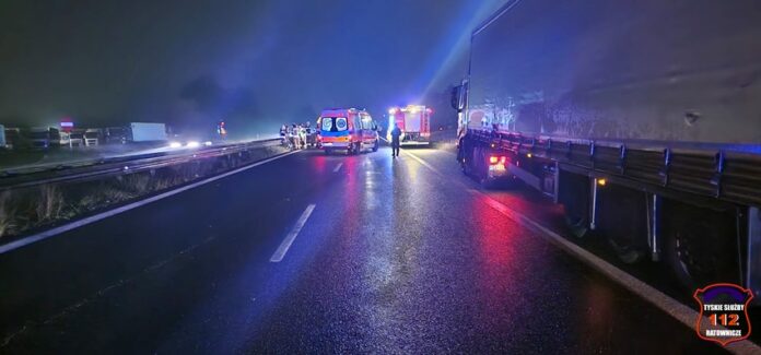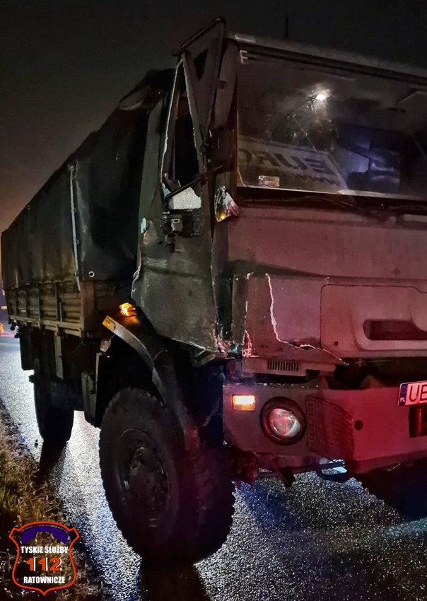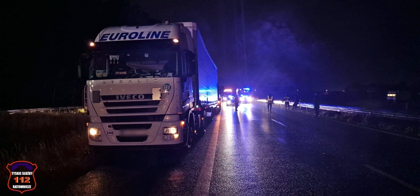 14 września około godziny 21:45 dyżurny SK KM PSP Tychy otrzymał zgłoszenie o zdarzeniu drogowym na trasie S1 w rejonie stacji paliw Orlen na pasie w kierunku Tychów. Ze zgłoszenia wynikało, że w zdarzeniu brały udział dwa pojazdy ciężarowe i osobówka. Na miejsce natychmiast zadysponowane zostały zastępy OSP Lędziny, KM PSP/JRG Tychy oraz ZRM i Policja. Na czas działań ruch na trasie został całkowicie wstrzymany. Po wstępnych oględzinach miejsca zdarzenia ruch został puszczony pobliską stacją paliw. W wyniku tego zdarzenia poszkodowany został kierowca osobowego Audi, który trafił pod opiekę ratowników medycznych, ale po zaopatrzeniu i przebadaniu pozostał na miejscu. W zdarzeniu brały udział: ciągnik siodłowy Iveco z naczepą, ciężarowy Star należący do Wojska Polskiego oraz osobowe Audi. Ze wstępnych ustaleń pracujących na miejscu Policjantów wynika, że kierowca wojskowej ciężarówki nie zachował należytej ostrożności i doprowadził do zdarzenia. Na miejsce wezwana została również Żandarmeria Wojskowa. Działania na miejscu trwały ponad dwie godziny.