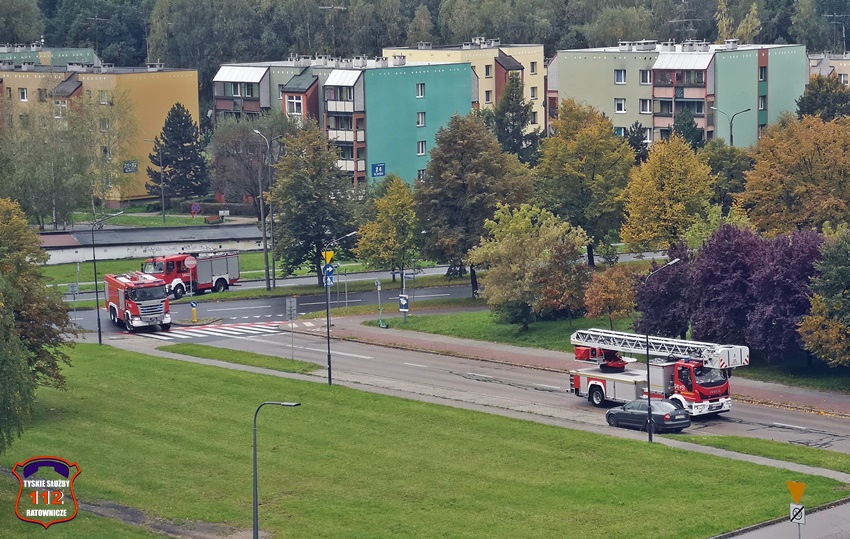3 października około godziny 10:30 dyżurny SK KM PSP Tychy otrzymał zgłoszenie z centrali przeciwpożarowej na parkingu podziemnym w budynku wielorodzinnym przy ul. Ks. Tischnera. Na miejsce zgłoszenia zadysponowane zostały zastępy KM PSP/JRG Tychy. Na czas działań ruch na ul. ks. Tischnera odbywał się wahadłowo. Po sprawdzeniu obiektu strażacy nie znaleźli źródła pożaru i zakończyli swoje działania.