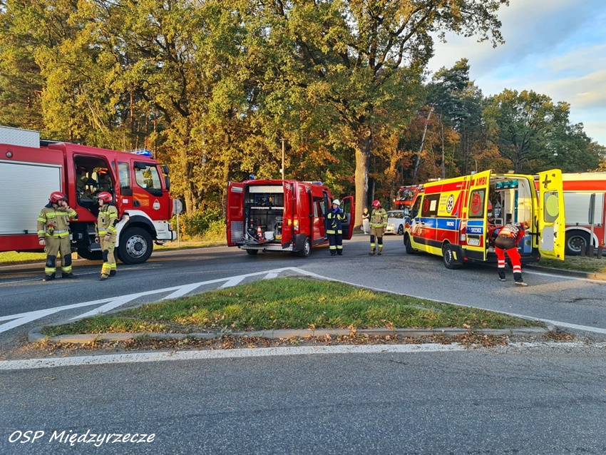 16 października około godziny 16:50 na skrzyżowaniu ul. Żubrów – Kopalniana w Międzyrzeczu doszło do zdarzenia drogowego z udziałem samochodu osobowego oraz motocykla. W wyniku zderzenia pojazdów droga została całkowicie zablokowana. Z pomocą poszkodowanym osobom podróżującym motocyklem pospieszyli świadkowie zdarzenia oraz wezwali oni na miejsce służby ratunkowe. Do działań ruszyły zastępy strażaków z OSP Międzyrzecze, KP PSP/JRG Pszczyna, KM PSP/JRG Tychy oraz ZRM i Policja. W wyniku zdarzenia dwie osoby podróżujące motocyklem doznały obrażeń ciała i trafiły pod opiekę ratowników medycznych. Ze wstępnych ustaleń pracujących na miejscu Policjantów wynika, że sprawcą zdarzeni jest kierowca samochodu osobowego, który wymusił pierwszeństwo na kierowcy jednośladu. Działania służb na miejscu trwały blisko dwie godziny. Policjanci KPP Bieruń prowadza dalsze postępowanie w tej sprawie.