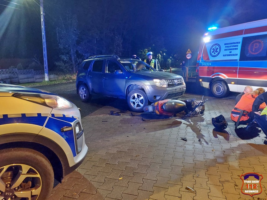 25 października około godziny 18:35 na ul. Wyrskiej w Łaziskach Górnych doszło do zdarzenia drogowego z udziałem samochodu osobowego oraz skutera. Na miejsce zdarzenia wezwany został ZRM i patrol Policji. Na czas działań w miejscu zdarzenia występowały utrudnienia w ruchu. Kierujący jednośladem trafił pod opiekę ratowników medycznych. Jak się okazało podczas czynności , kierujący jednośladem wydmuchał 1,7 promila. Ze wstępnych ustaleń pracujących na miejscu Policjantów wynika, że sprawczynią zdarzeni e jest kierująca Dacią kobieta, która nie ustąpiła pierwszeństwa przejazdu jednośladowi. Działania na miejscu trwały blisko dwie godziny. Mikołowscy Policjanci prowadzą dalsze postepowanie w tej sprawie.