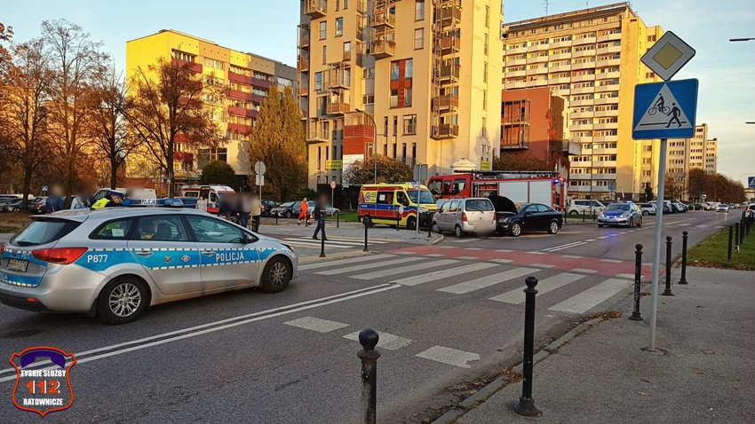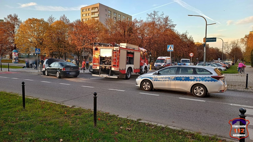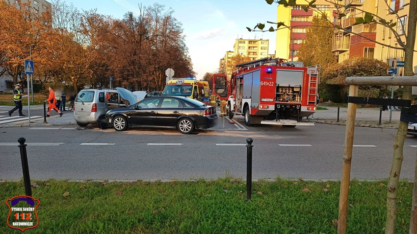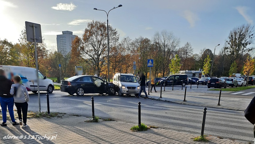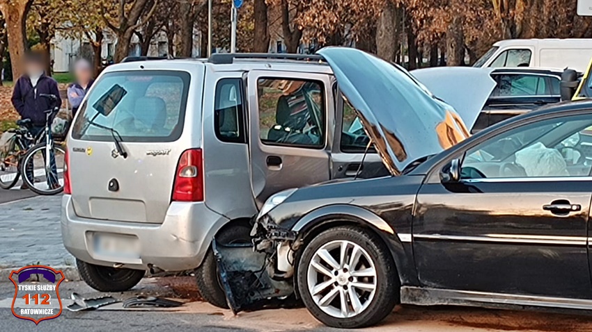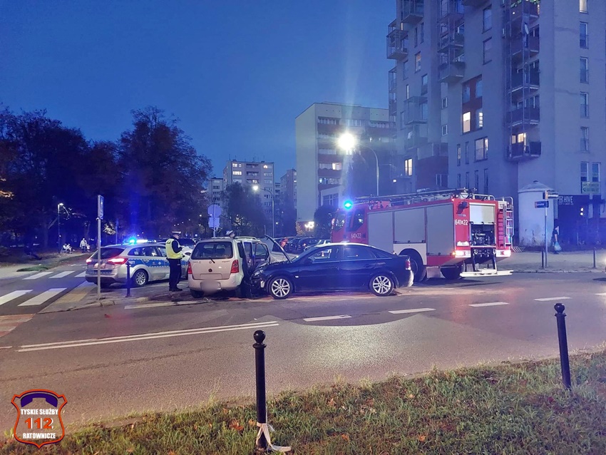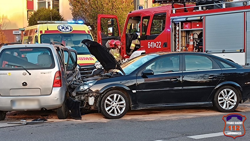 28 października około godziny 16 na skrzyżowaniu ul. Dąbrowskiego – Darwina doszło do czołowo – bocznego zderzenia dwóch samochodów osobowych. W zdarzeniu brały udział Suzuki oraz Opel. Na miejsce zdarzenia wezwane zostały: ZRM, patrole Policji oraz zastęp KM PSP/JRG Tychy. Na czas działań w miejscu zdarzenia występowały utrudnienia w ruchu. Pod opiekę ratowników medycznych trafiły trzy osoby podróżujące pojazdami. Jedna osoba podróżowała Suzuki, a dwie w tym dziecko Oplem. W wyniku zdarzenia kierowca Opla doznał urazu ręki i został przetransportowany do szpitala. Z ustaleń pracujących na miejscu Policjantów jak i relacji uczestników zdarzenia wynika, że sprawcą zdarzenia jest kierująca Suzuki kobieta, która wykonując manewr skrętu w lewo z ul. Dąbrowskiego w ul. Darwina nie ustąpiła pierwszeństwa jadącemu w kierunku ul. Grota – Roweckiego kierowcy Opla. Dodatkowo na miejsce wezwany został technik kryminalistyki. Utrudnienia w ruchu w miejscu zdarzenia trwały ponad trzy godziny. Policjanci KMP Tychy prowadzą dalsze postępowanie w tej sprawie.