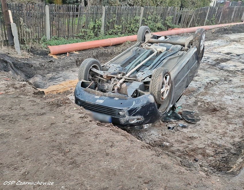 6 listopada około godziny 15:30 na remontowanym odcinku ul. Wawelskiej w Bieruniu doszło do groźnie wyglądającego zdarzenia drogowego. Z niewyjaśnionych przyczyn doszło do dachowania osobowego Fiata. Na miejsce zdarzenia zadysponowane zostały: ZRM, zastępy OSP Czarnuchowice, OSP Bieruń Nowy, KM PSP/JRG Tychy oraz Policja. W trakcie działań ruch na ul. Wawelskiej został zablokowany oraz wyznaczono objazdy. Na szczęście dwie osoby podróżujące pojazdem nie doznały poważnych obrażeń i po przebadaniu przez ratowników medycznych pozostały na miejscu. Po około dwóch godzinach pojazd został wydobyty z wykopu i odholowany. Kierującemu zostało zatrzymane prawo jazdy. Policjanci KPP Bieruń prowadzą dalsze postępowanie w tej sprawie.