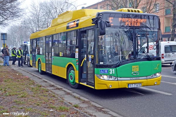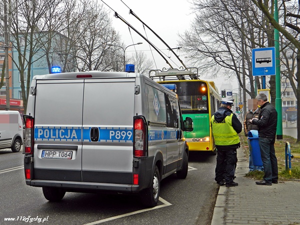 31 grudnia około godziny 11.40 na ul. Grota Roweckiego doszło do kolizji trolejbusu z samochodem osobowym. Na miejsce zadysponowany został patrol WRD Policji. Nikomu z pasażerów trolejbusu nic się nie stało.Przybyły na miejsce patrol Policji ustalił przebieg wydarzeń. Kierujący trolejbusem wjeżdżając na powierzchnię zaznaczoną jako przystanek nie zachował ostrożności i przytarł zaparkowany w pobliżu samochód marki BMW. Uszkodzeniu uległ zderzak samochodu osobowego oraz lekko tył trolejbusu. Kierujący pojazdami byli trzeźwi. Obydwaj kierujący zostali ukarani mandatami, każdy za swoje wykroczenie.