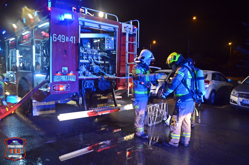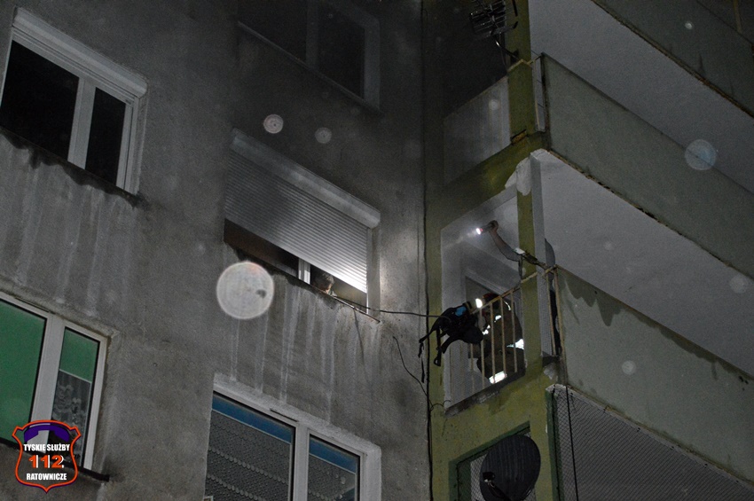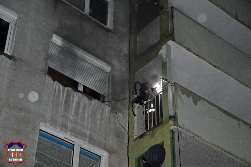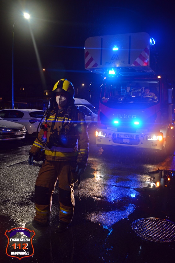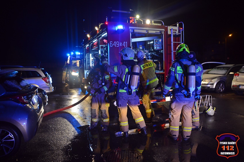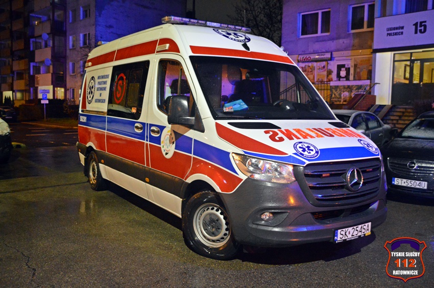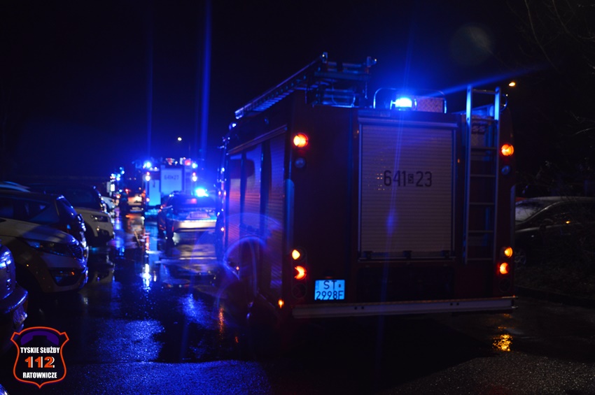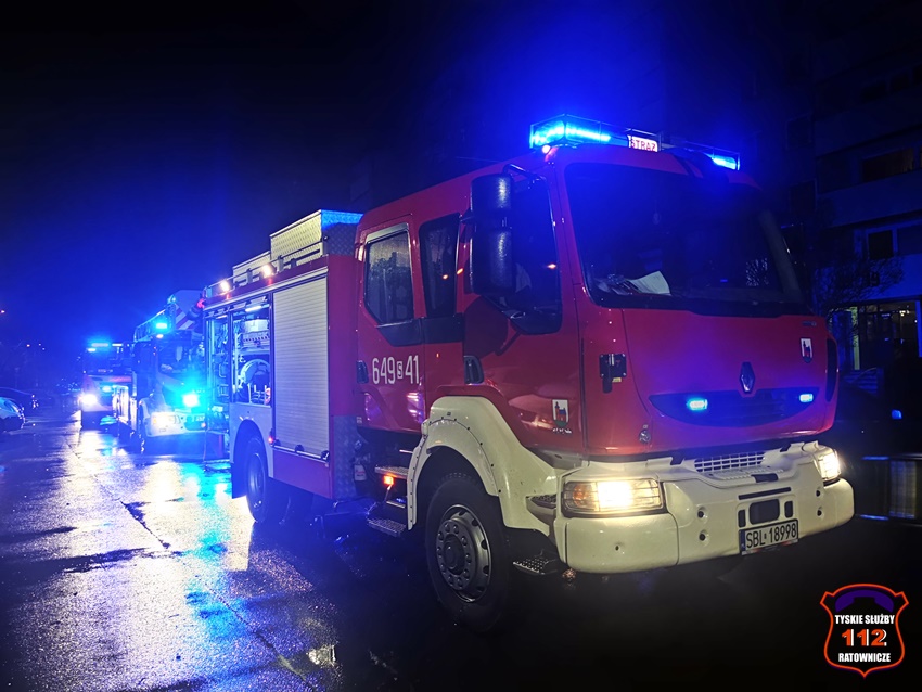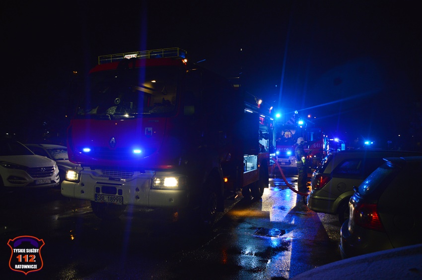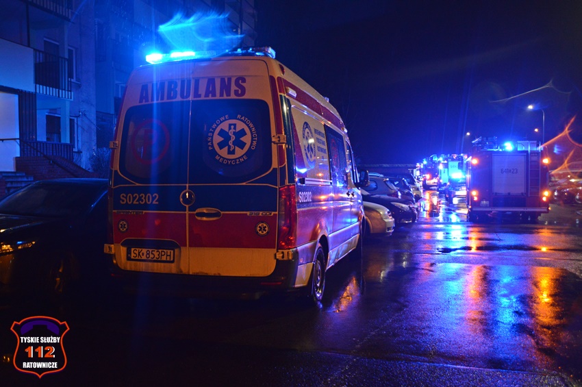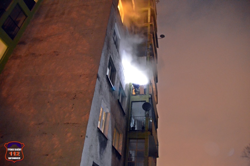 6 grudnia około godziny 22:50 dyżurny SK KM PSP Tychy otrzymał zgłoszenie o zadymieniu w budynku wielorodzinnym przy ul. Legionów Polskich 19. Na miejsce zgłoszenia zadysponowane zostały zastępy OSP Lędziny (z zabezpieczenia rejonu operacyjnego), KM PSP/JRG Tychy oraz patrol Policji. W trakcie dojazdu na miejsce okazało się, że zadymienie jest spowodowane pożarem w jednym z mieszkań, a w jego wnętrzu uwięzione są dwie osoby. Po przybyciu na miejsce strażacy przy użyciu podręcznego sprzętu burzącego otworzyli drzwi i przystąpili do działań ratowniczo – gaśniczych. W tym samym czasie rota strażaków z balkonu mieszkania obok poprzez uchylone okno podała uwięzionym lokatorom powietrze z aparatu ochrony układu oddechowego. Kilka minut później pożar został opanowany i ugaszony. Dwie osoby (kobieta i mężczyzna) podtruli się dymem. Kierujący Działaniem Ratowniczym drogą radiową poprosił dyżurnego SK KM PSP Tychy o zadysponowanie na miejsce ZRM. Lokatorzy zostali ewakuowani z mieszkania i przekazani pod opiekę przybyłych na miejsce ratowników medycznych. Po wstępnym przebadaniu na miejscu oboje zostali przetransportowani do szpitala na dokładne badania. Dodatkowo na miejsce wezwany został przedstawiciel administratora budynku. Po zakończonych działaniach mieszkanie zostało zabezpieczone przez funkcjonariuszy Policji. Działania służb ratunkowych na miejscu zostały zakończone około godz. 1 w nocy. Policjanci KMP Tychy prowadzą dalsze postępowanie mające na celu wyjaśnienie przyczyn i okoliczności powstania pożaru.