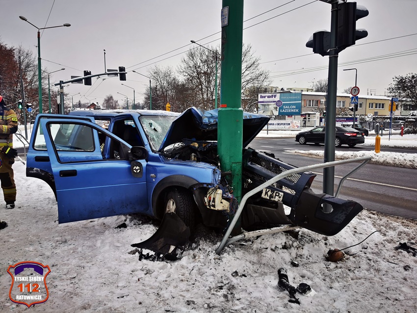 14 grudnia około godziny 13:45 na skrzyżowaniu ul. Poziomkowa – Piłsudskiego – Jordana doszło do zdarzenia drogowego z udziałem dwóch pojazdów. W zdarzeniu brały udział Skoda i Land Rover. W wyniku zderzenia land Rover uderzył dodatkowo w słup trakcji trolejbusowej. Na miejsce wezwane zostały: ZRM, zastępy KM PSP/JRG Tychy oraz patrole Policji. Na czas działań służb ratunkowych w miejscu zdarzenia występowały utrudnienia w ruchu. Kierowca Land Rovera z obrażeniami ciała został przetransportowany do szpitala na dokładne badania. Jak się okazało kierowca Land Rovera jechał bez zapiętych pasów, a po sprawdzeniu w policyjnej bazie danych okazało się, że ma aktywny zakaz prowadzenia pojazdów. Jego pojazd został odholowany na policyjny parking. Trwa ustalanie dokładnych przyczyn i okoliczności tego zdarzenia. Działania na miejscu trwały blisko dwie godziny.