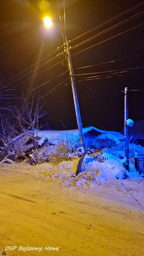16 grudnia około godziny 21:35 na ul. Korzenickiej w Bojszowach Nowych doszło do zdarzenia drogowego z udziałem jednego pojazdu. Na śliskiej nawierzchni kierująca osobowym Peugeotem straciła panowanie nad swoim pojazdem i uderzyła w słup energetyczny. Na miejsce zdarzenia wezwane zostały: ZRM, zastępy OSP Bojszowy Nowe, KM PSP/JRG Tychy oraz Policja i pogotowie energetyczne. Na czas działań ruch został całkowicie zablokowany. W wyniku uderzenia betonowy słup energetyczny został znacznie uszkodzony i została podjęta decyzja o konieczności jego pilnej wymiany. Do wczesnych godzin porannych w rejonie prac nie było prądu. Kierująca pojazdem kobieta trafiła pod opiekę ratowników medycznych. Policjanci KPP Bieruń prowadzą dalsze postępowanie w sprawie tego zdarzenia.