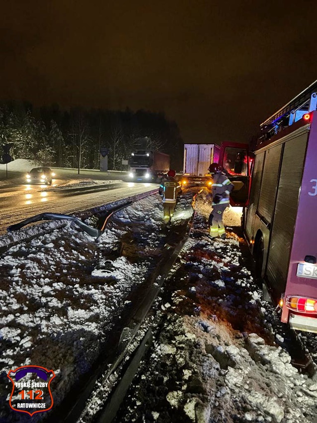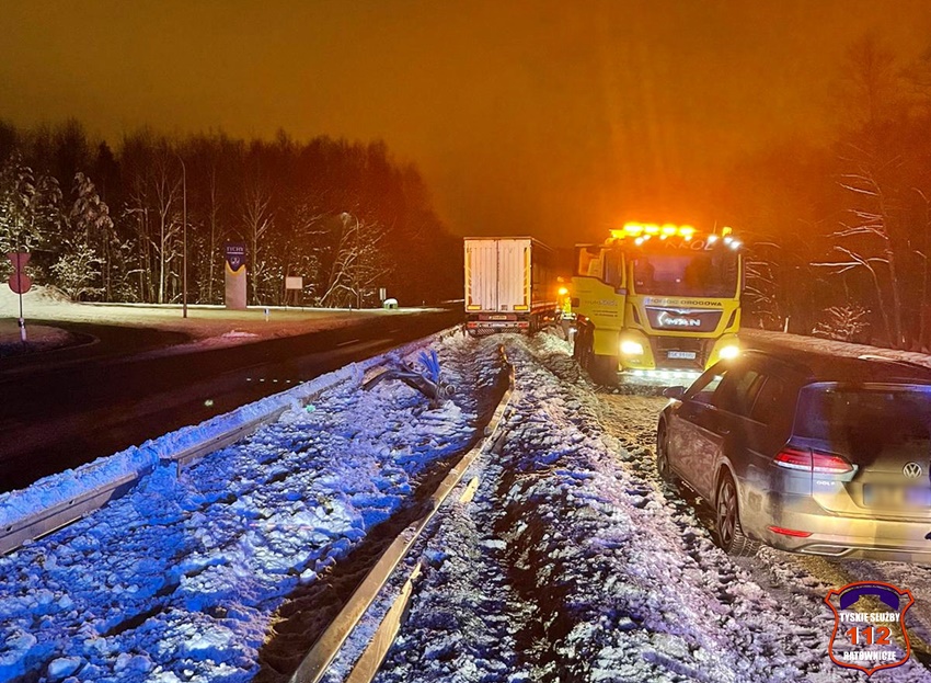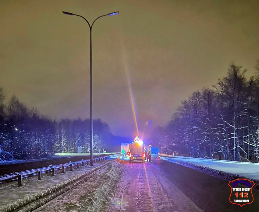 19 grudnia około godziny 19:50 na trasie DK 86 w rejonie zjazdu z ul. Boya – Żeleńskiego doszło do zdarzenie drogowego z udziałem ciągnika siodłowego Scania z naczepą. Kierujący samochodem ciężarowym „złapał” pobocze i uderzył w bariery energochłonne dodatkowo ścinając latarnię. W leżącą latarnię uderzył dodatkowo kierujący dostawczym VW. Na miejsce wezwane zostały patrole Policji oraz zastępy katowickich strażaków. Na czas działań ruch w obu kierunkach odbywał się jednym pasem. Na miejsce zdarzenia wezwany został holownik pomocy drogowej, który wyciągnął zestaw z potrzasku. Działania na miejscu trwały do późnych godzin nocnych. Policjanci KMP Tychy prowadzą dalsze postępowanie w tej sprawie.