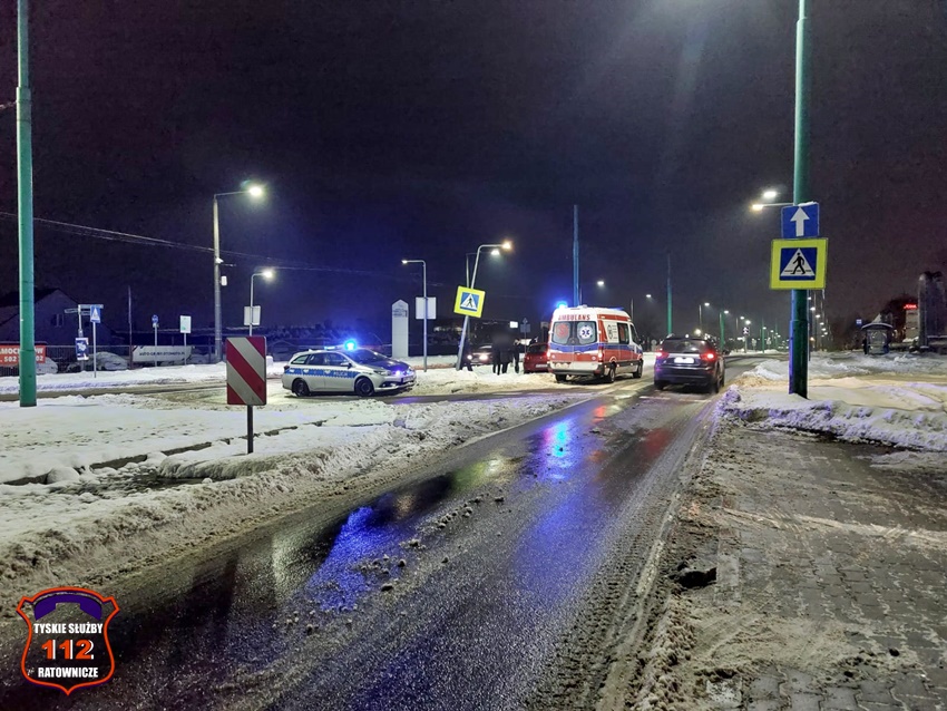 20 grudnia po godzinie 6 na oznakowanym przejściu dla pieszych w ciągu ul. Towarowej w rejonie skrzyżowania z ul. Cielmicką doszło do potrącenia pieszej przez samochód osobowy Renault Clio. Na miejsce zdarzenia wezwane zostały: ZRM oraz patrole Policji. W wyniku zdarzenia 35 – letnia piesza doznała obrażeń i trafiła pod opiekę ratowników medycznych. Ze wstępnych ustaleń pracujących na miejscu Policjantów wynika, że kierujący Renault mężczyzna (63 lata) nie ustąpił pierwszeństwa pieszej. Na miejscu działał również technik kryminalistyki. Działania służb ratunkowych na miejscu trwały około dwóch godzin. Policjanci KMP Tychy prowadzą dalsze postępowanie w tej sprawie.