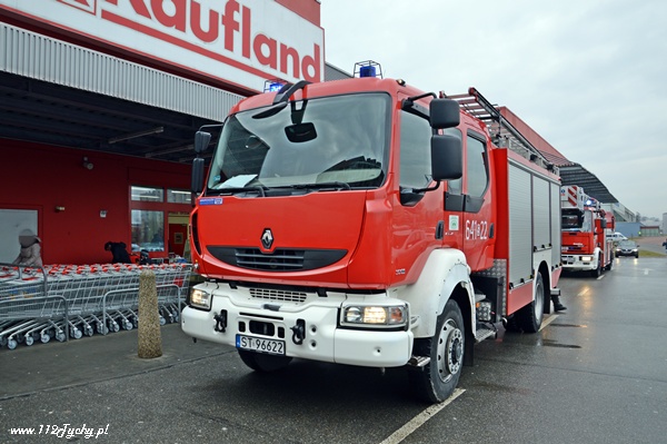 5 stycznia około godziny 12.15 do MSK w Tychach wpłynęło zgłoszenie z systemu pożarowego marketu Kaufland na ul. Tischnera. Na miejsce natychmiast wysłane zostały trzy zastępy z JRG Tychy (dwa GBA i SD). Po dotarciu na miejsce i rozpoznaniu sytuacji okazało się, że na terenie marketu w jednym z box-ów handlowych prowadzony jest remont. W czasie, którego duże ilości pyłu spowodowały załączenie się systemu pożarowego. Po dokładnym sprawdzeniu i potwierdzeniu braku zagrożenia pożarowego zastepy powróciły do koszar.