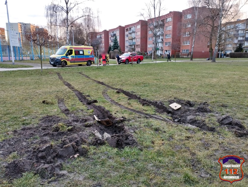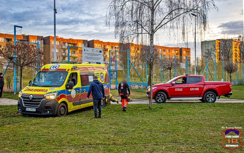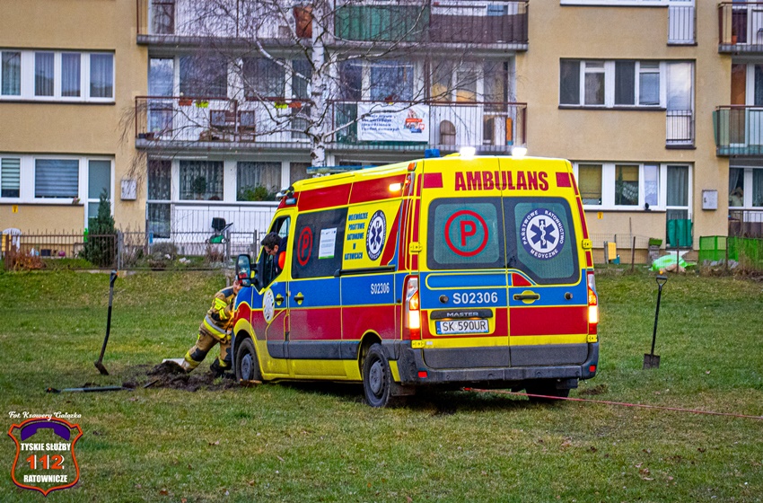 31 grudnia po godzinie 14 dyspozytor medyczny otrzymał zgłoszenie, że w rejonie boiska pomiędzy ul. Młodzieżową i ul. Moniuszki znajduje się osób potrzebująca pilnej pomocy medycznej. Na miejsce zdarzenia wysłany został ZRM ze stacji WPR Katowice w Tychach. Po przybyciu pod wskazany adres ratownicy nikogo nie znaleźli. Alarm okazał się fałszywy. W trakcie próby powrotu do bazy okazało się, że teren jest zbyt miękki i karetka się zakopała. W związku z powyższym ratownicy poprosili o pomoc tyskich strażaków. Na miejsce zadysponowane zostały zastępy KM PSP/JRG Tychy. Przybyli na miejsce strażacy próbowali wypchnąć karetkę z potrzasku jednak bezskutecznie. Została podjęta decyzją o użyciu wyciągarki zamontowanej na lekkim samochodzie specjalnym tyskich strażaków. Po kilkunastu minutach karetka została wyciągnięta. Po około godzinie działania zostały zakończone.