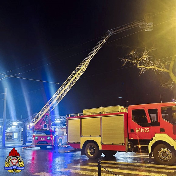 5 stycznia około godziny 16:20 dyżurny SK KM PSP Tychy otrzymał zgłoszenie o niebezpiecznie zwisających gałęziach na drzewie przy rondzie Dworcowym (Dworcowa – Asnyka – Andersa). Z związku z silnym wiatrem istniało zagrożenie dla pieszych oraz pojazdów przejeżdżających w pobliżu. Na miejsce zadysponowane zostały zastępy KM PSP/JRG Tychy. Strażacy po sprawieniu drabiny mechanicznej z jej kosza usunęli zagrażające gałęzie. Po około czterdziestu minutach działania zostały zakończone.