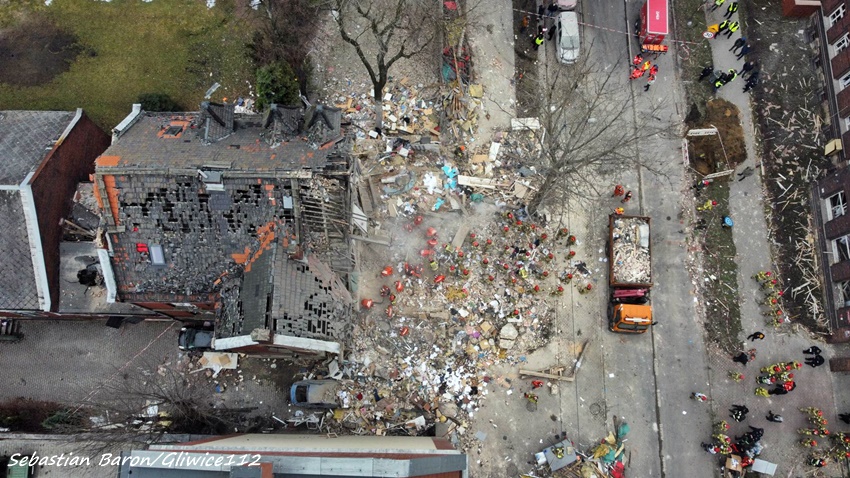 27 stycznia około godziny 8:30 w jednej z kamienic przy ul. ks. bpa. H. Bednorza w Katowicach doszło do wybuchu, w wyniku którego doszło do zawalenia części budynku. Ze zgłoszenia do dyżurnego SK KM PSP Katowice wynikało, że pod gruzami mogą znajdować się ludzie. Na miejsce natychmiast zadysponowane zostały Zespoły Ratownictwa Medycznego, zastępy PSP Katowice oraz wsparcie m.in. z Tychów, Mysłowic, Mikołowa, Sosnowca, a także grupy poszukiwawcze z Jastrzębia Zdrój i Nowego Sącza. Grupa z Nowego Sącza do Katowic dotarła drogą lotniczą dzięki współpracy z 3 grupą poszukiwawczo – ratowniczą z podkrakowskich Balic. W wyniku wybuchu poszkodowanych zostało siedem osób (5 dorosłych i dwoje dzieci), a dwie osoby poniosły śmierć. Uszkodzone w wyniku wybuchu zostały sąsiedni budynki, m.in. dwie szkoły oraz kilka samochodów zaparkowanych w pobliżu. Miejsce zdarzenia zostało zabezpieczone przez patrole Policji oraz Straży Miejskiej, a w działaniach brali również udział przedstawiciele pogotowia gazowego, pogotowia energetycznego oraz przedstawiciele służb miejskich i UM Katowice. Na czas działań ruch został całkowicie wstrzymany. Na chwilę obecną nie wyklucza się, że przyczyną wybuchu był gaz. Policja oraz prokuratura wyjaśniają przyczyny i okoliczności tej tragedii.