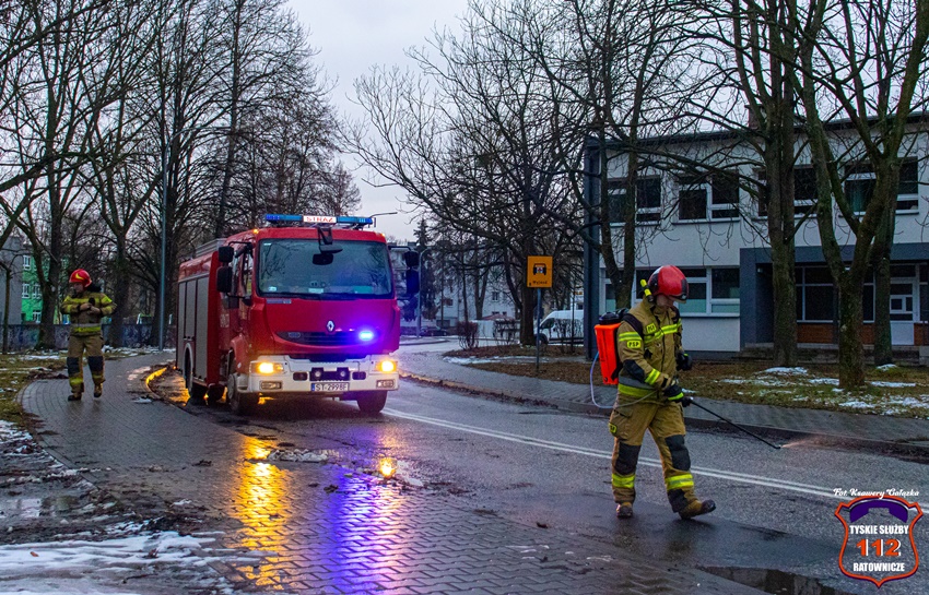 31 stycznia około godziny 15:30 dyżurny SK KM PSP Tychy otrzymał zgłoszenie o plamie substancji ropopochodnej na al. Niepodległości i ul. Fitelberga. Na miejsce zdarzenia zadysponowane zostały dwa zastępy KM PSP/ JRG Tychy oraz patrole Policji i Straży Miejskiej. Na czas neutralizacji zagrożenia występowały utrudnienia w ruchu. Działania na miejscu trwały około godziny.
