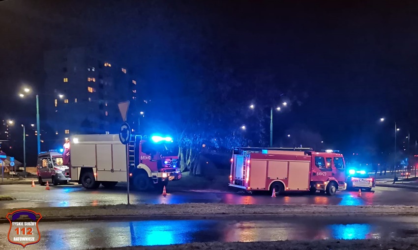 1 lutego około godziny 19:40 dyżurny SK KM PSP Tychy otrzymał zgłoszenie o zdarzeniu drogowym na rondzie Polonia (Żwakowska – al. Bielska – al. Jana Pawła II). Ze zgłoszenia wynikało, że kierowca samochodu osobowego marki KIA stracił panowanie nad swoim pojazdem i wjechał na wyspę ronda. Na miejsce zdarzenia natychmiast zadysponowane zostały: ZRM, zastępy KM PSP/JRG Tychy oraz patrole Policji i Straży Miejskiej. Po przybyciu na miejsce zgłoszenie zostało potwierdzone. 36 – latek trafił pod opiekę ratowników medycznych, a następnie został przetransportowany do szpitala na dokładną diagnostykę. Działania służb ratunkowych na miejscu zdarzenia trwały około godziny. Po około dwóch godzinach uszkodzony pojazd został został odholowany przez pomoc drogową. Policjanci KMP Tychy prowadzą dalsze postępowanie w tej sprawie.