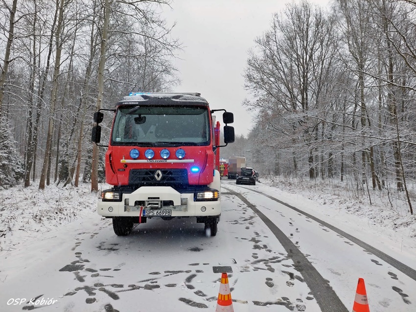 3 lutego około godziny 11:50 dyżurny SK KM PSP Tychy otrzymał zgłoszenie od dyżurnego SK KP PSP Pszczyna o wypadku drogowym na ul. Centralnej w Kobiórze. Do działań poza ZRM, patrolami Policji z Pszczyny i Mikołowa zadysponowane zostały zastępy: OSP Kobiór, KP PSP/JRG Pszczyna oraz KM PSP/JRG Tychy. Ze zgłoszenia, które wpłynęło do dyżurnego SK KP PSP Pszczyna wynikało, że doszło do zderzenia samochodu osobowego marki Opel z dostawczym Citroenem. Na czas działań ul. Centralna ( DW 928 ) została całkowicie zablokowana, a Policja wyznaczyła objazdy. Pojazdami uczestniczącymi w zdarzeniu podróżowały łącznie trzy osoby, dwie Citroenem oraz jedna Oplem. To właśnie ok. 30 – letni kierujący Oplem doznał śmiertelnych w skutkach obrażeń. Ze wstępnych ustaleń pracujących pod nadzorem prokuratora Policjantów wynika, że kierujący Oplem na łuku drogi utracił panowanie nad swoim pojazdem i bokiem uderzył w jadącego z naprzeciwka dostawczaka. Działania na miejscu trwały blisko sześć godzin. Dopiero około godziny 18 pojazdy zostały odholowane, a ruch został przywrócony. Policjanci KPP Pszczyna pod nadzorem prokuratury prowadzą czynności mające na celu dokładne wyjaśnienie przyczyn i okoliczności tego tragicznego wypadku.