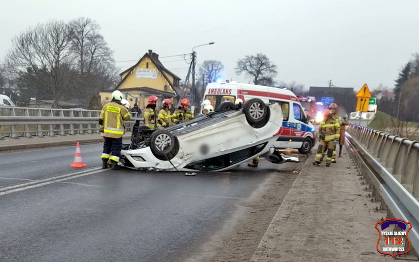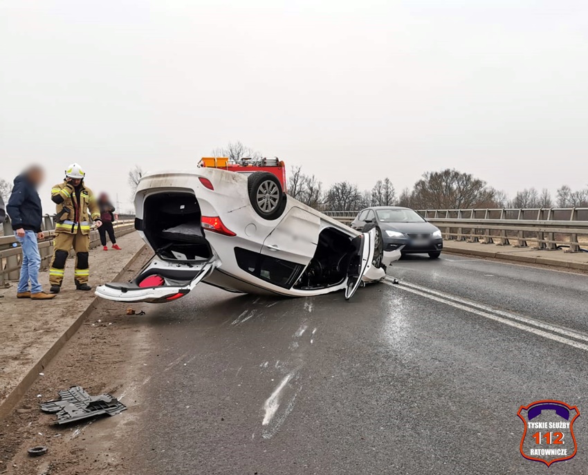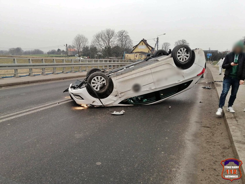 11 lutego około godziny 16 na moście nad rz. Wisła w Bieruniu doszło do dachowania samochodu osobwoego. W zdarzeniu brał udział osobowy Hyundai. Na miejsce zdarzenia wezwane zostały: ZRM, zastępy straży pożarnej z OSP Czarnuchowice, OSP Bieruń Nowy, KM PSP/JRG Tychy oraz patrol Policji. Na czas działań ruch w miejscu zdarzeni został całkowicie zablokowany. Osobówką podróżował mężczyzna (34 lata), który na szczęście nie doznał obrażeń. Ze wstępnych ustaleń pracujących na miejscu Policjantów wynika, że przyczyną zdarzenia było niedostosowanie prędkości do panujących warunków atmosferycznych. Utrudnienia w ruchu trwały ponad godzinę. Bieruńscy Policjanci prowadzą dalsze postępowanie w tej sprawie.